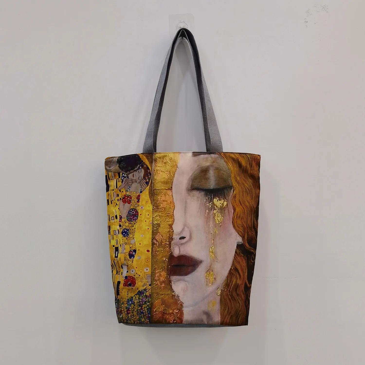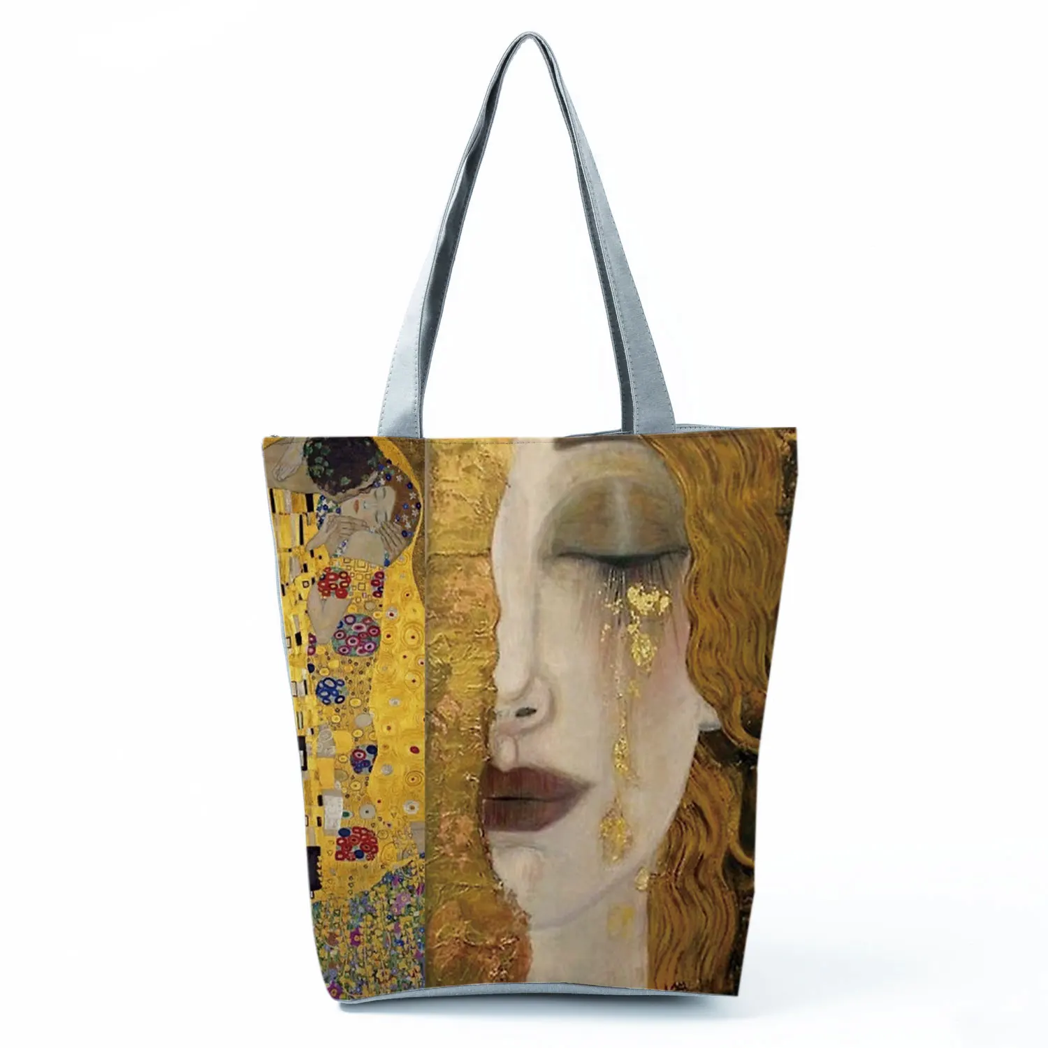 Индивидуальные картины маслом слезы ткань сумки-шопперы для женщин Gustav Климт дамская модная сумка большая емкость хозяйственная сумка через плечо