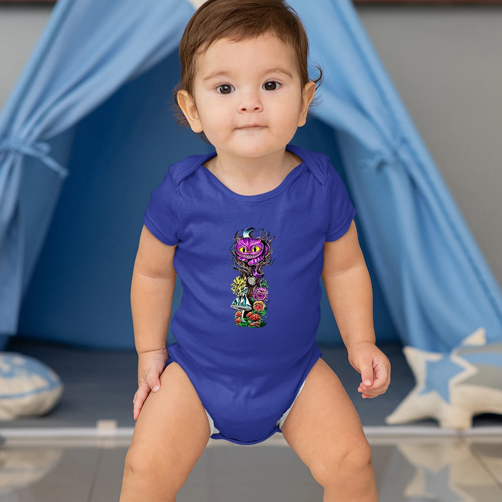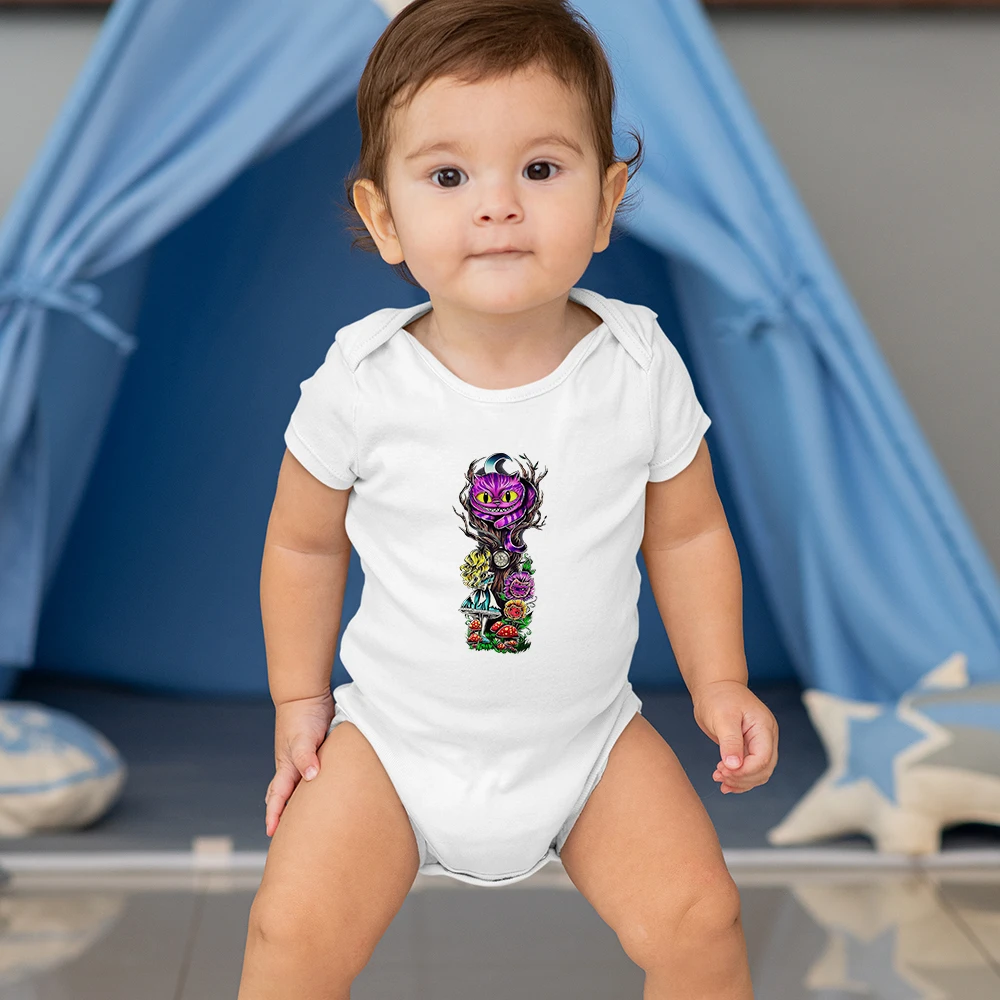Детский комбинезон с изображением Чеширского кота, Y2k, модная одежда для маленьких мальчиков, удобное мягкое боди для новорожденных, комбинезон с коротким рукавом для младенцев на лето и осень