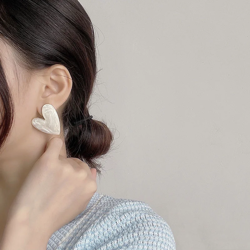 Серьги-гвоздики с большим сердцем белого цвета для женщин и девушек, Корейская любовь, капля глазури, эстетика, Повседневная жизнь, минималистичное ювелирное изделие, пирсинг для ушей