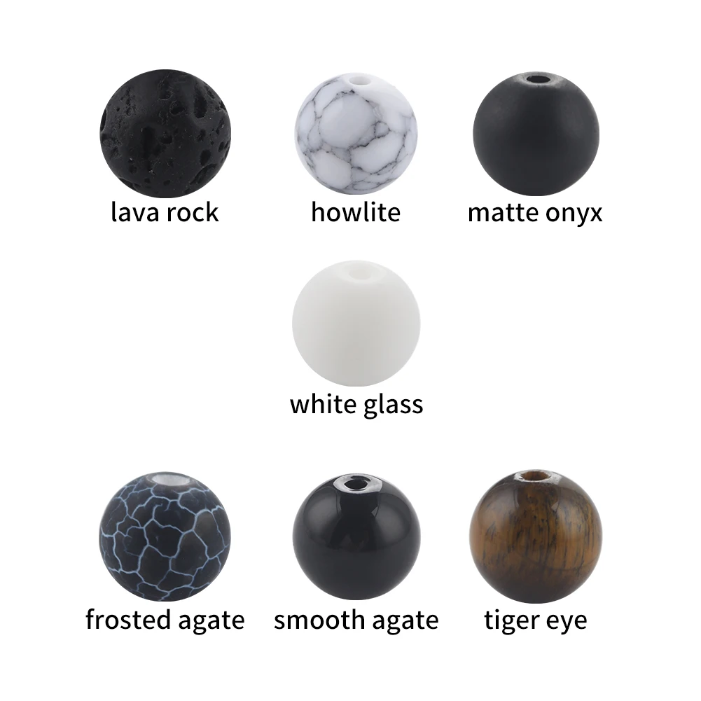Beads MaterialLava, howlite, matte onyx, frosted agate, agate, tiger eye