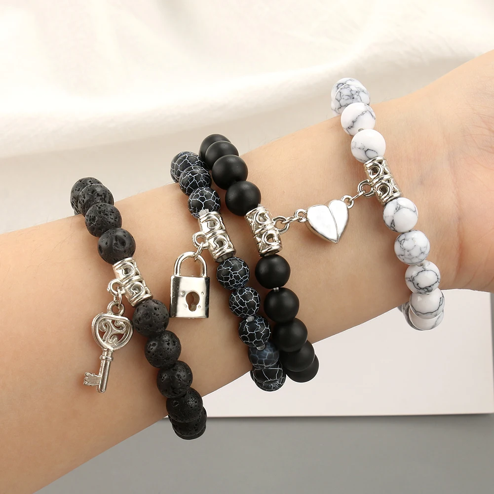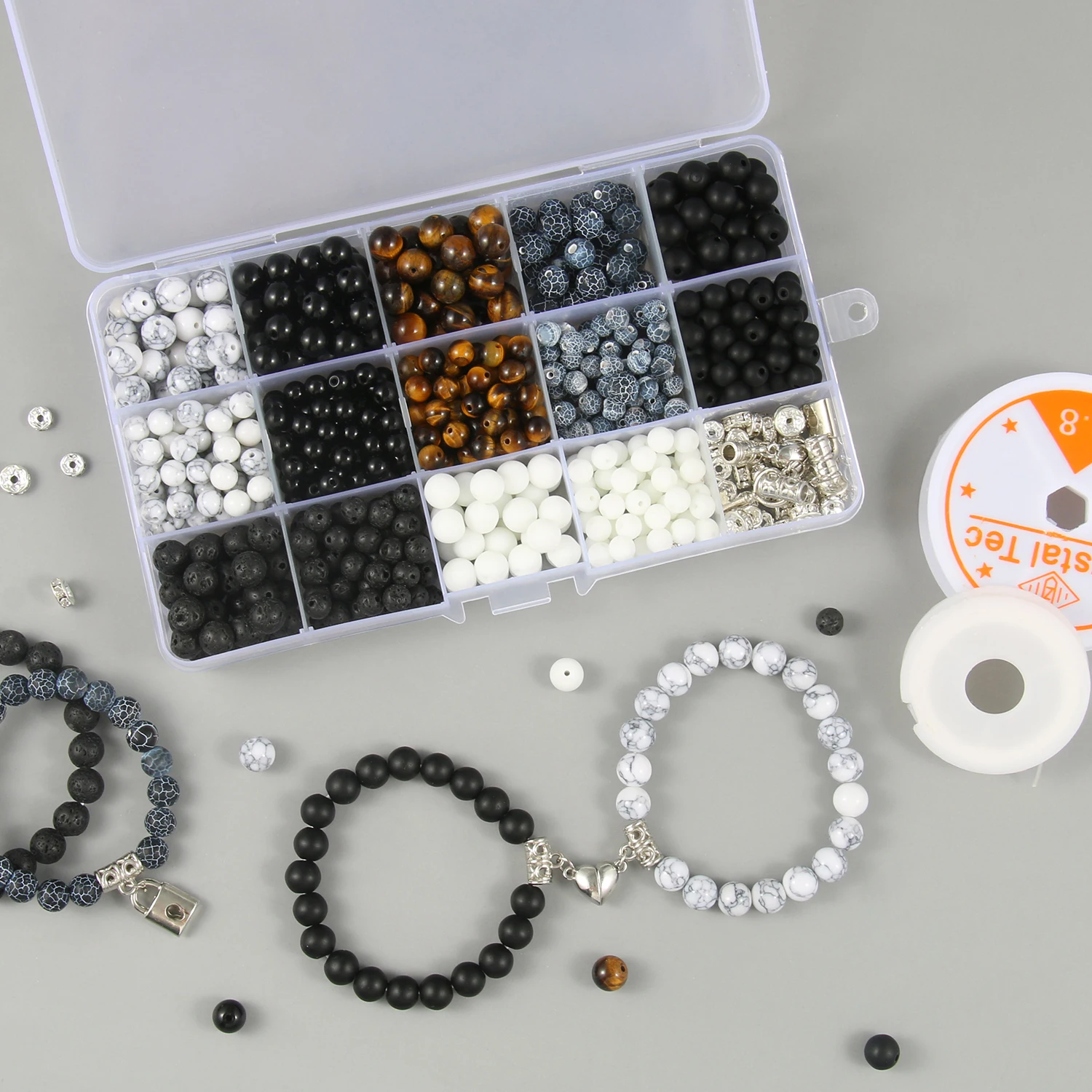 6/8 мм бусины из натурального камня набор агатов браслет из говлита набор бусин для влюбленных расстояние магнитные застежки Подвески Ювелирные изделия Аксессуары