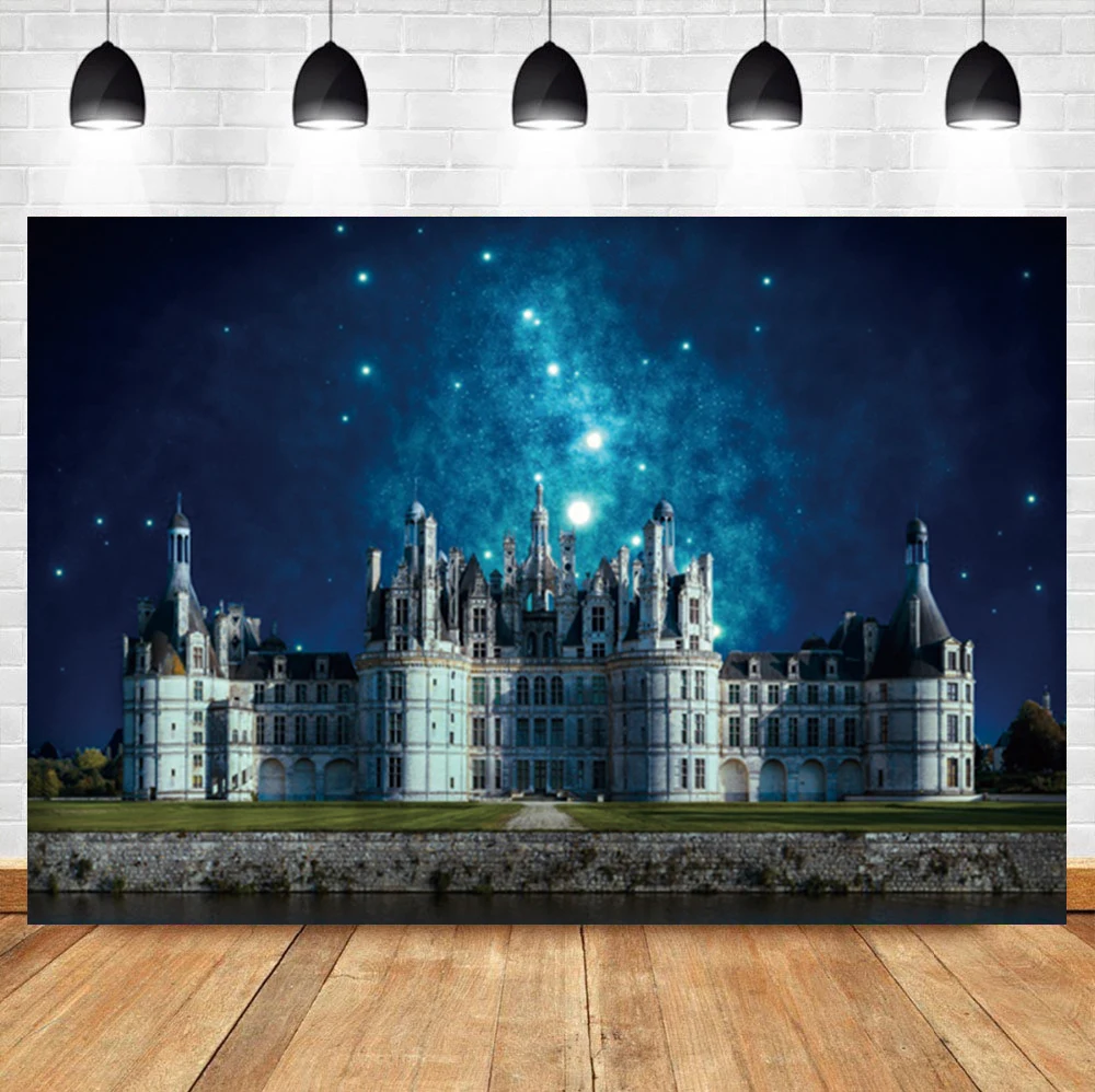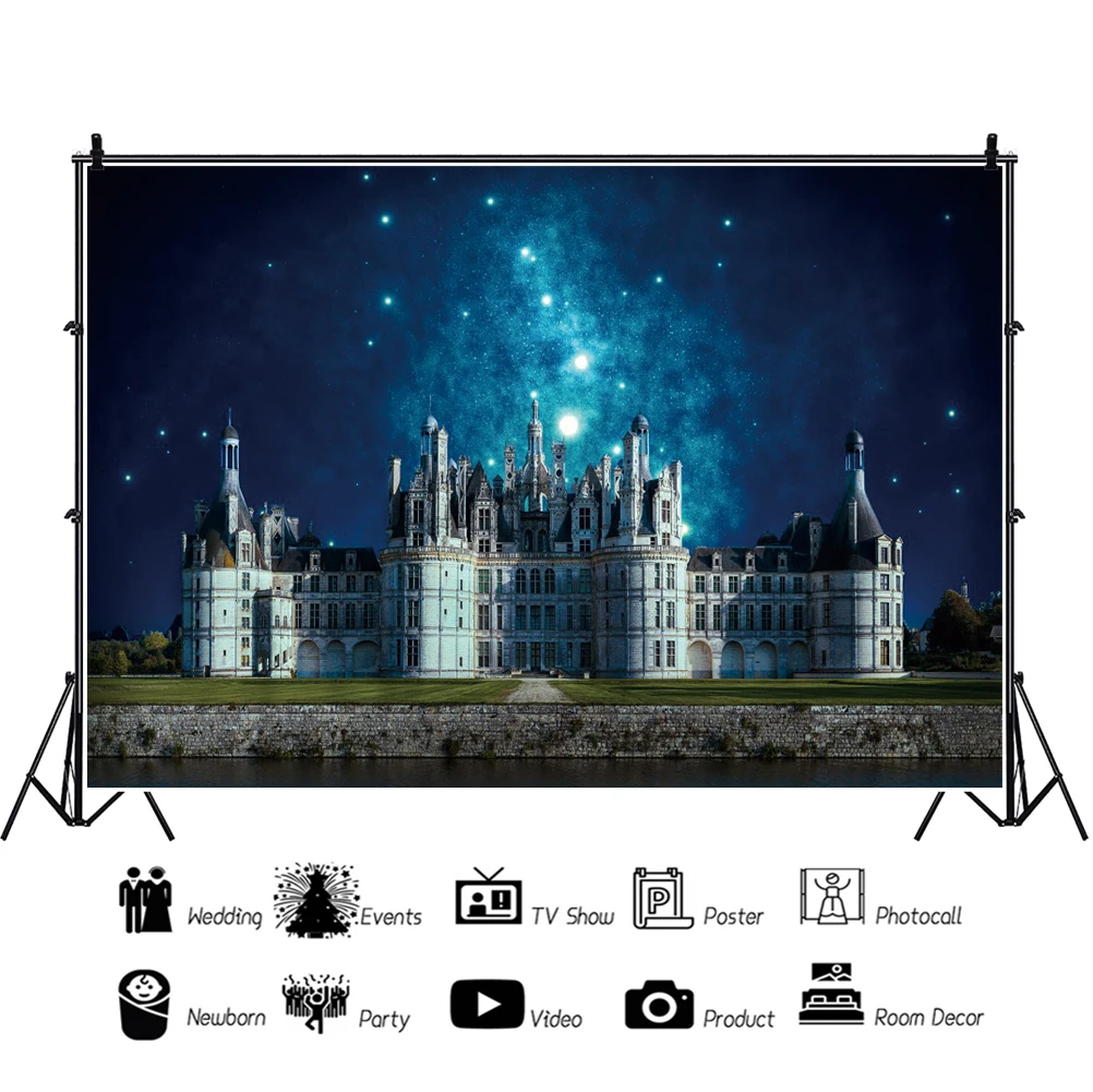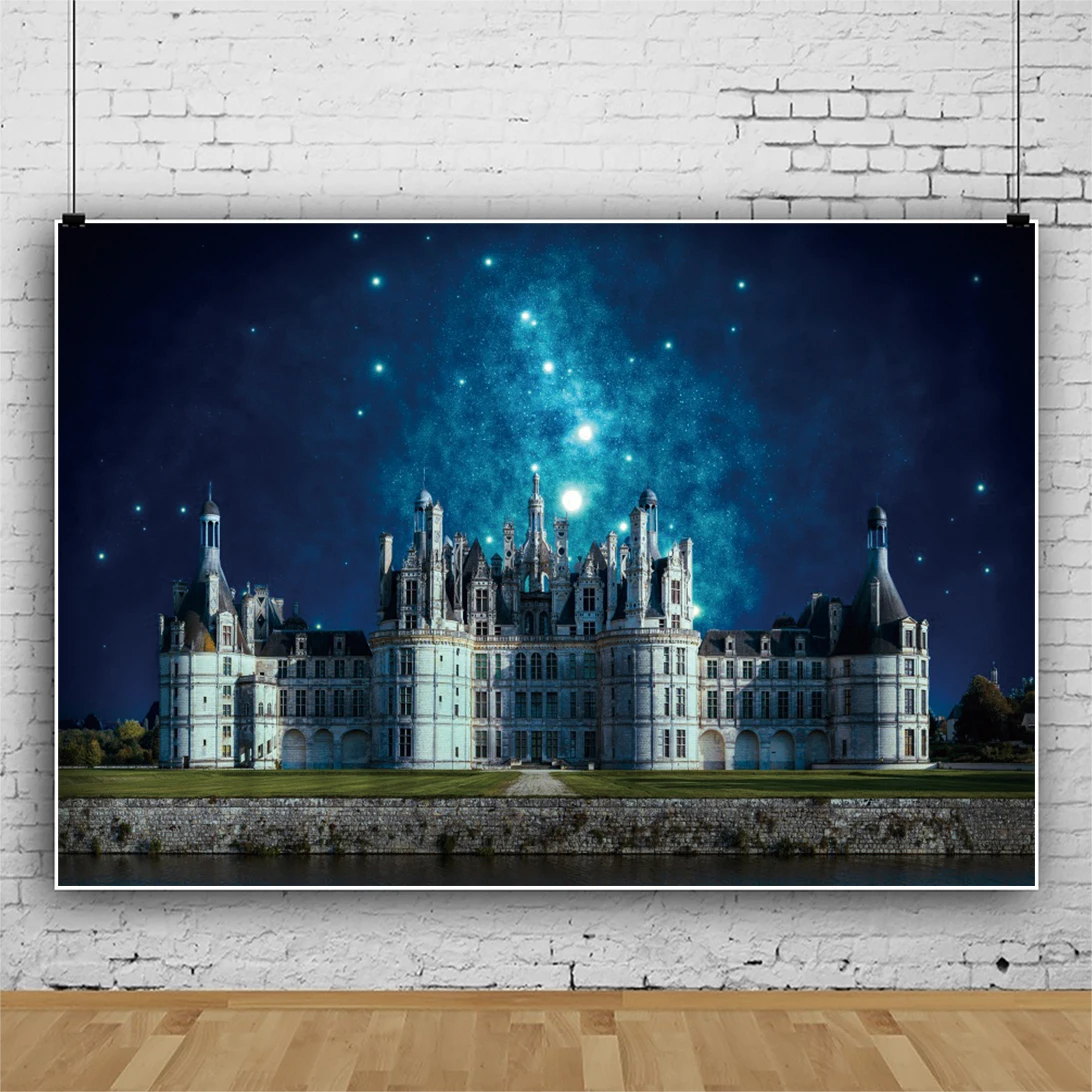 Laeacco ночной голубой градиент небо звезды замок декор комнаты фотография Фон фотография фото фон для фотостудии