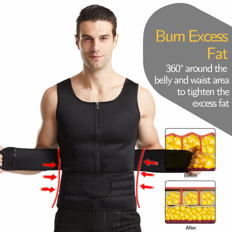 Мужской шейпер для тела, жилет-сауна, тренировка талии, двойной ремень, тренировочная рубашка, корсет, топ Abdo, Мужская корректирующая одежда для похудения, сжигание жира