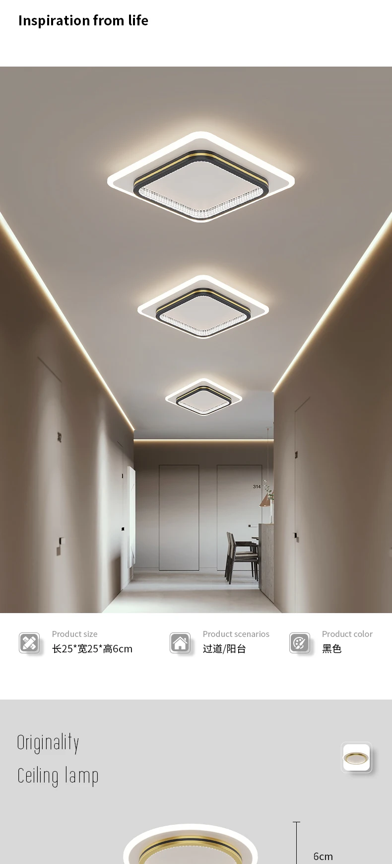 Квадратная круглая приблизительная лампа для кабинета, коридора, спальни, кухни, чернаяЗолотая потолочная лампа для внутреннего освещения