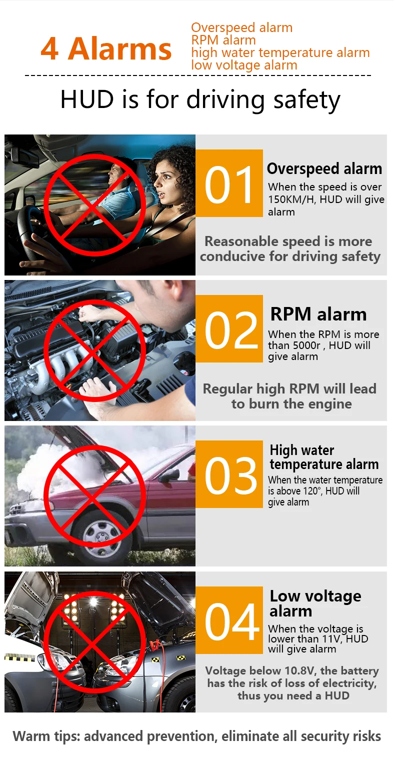 5. Чрезмерная сигнализация вождения, Сигнализация низкого напряжения, сверхскоростная сигнализация, высокотемпературная сигнализация, неисправная сигнализация двигателя