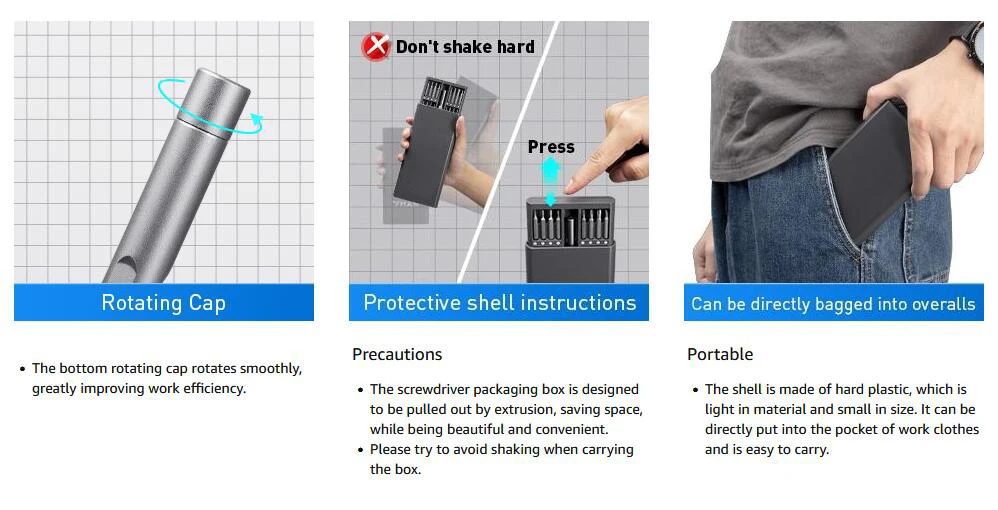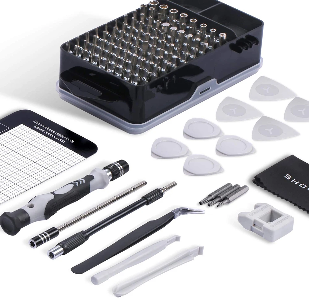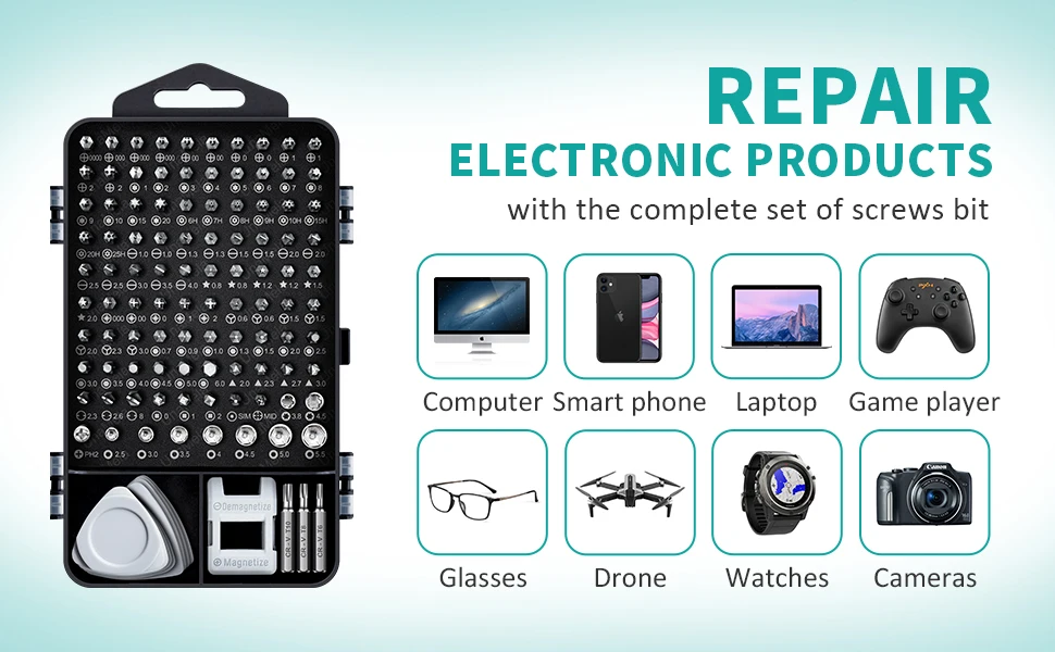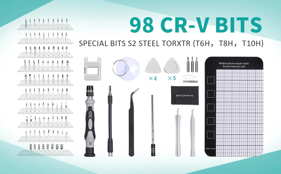 【Более высокая твердость 60HRC & 55HRC, более долговечная 】этот Набор прецизионных отверток состоит из 98 отверток, которые изготовлены из стали Cr-V (твердость 55HRC) и 3 отверток TorxTR, изготовлено из легированной стали S2 (твердость 60HRC). Тип 3 наконечников отверток TorxTR T6H, T8H и T10H, которые обладают более высокой твердостью, более сильным крутящим моментом и сильной ударопрочностью. Его можно установить на беспроводные отвертки и разобрать более 500 винтов.122 122 в 1 многофункциональная отвертка kit】набор отверток 122 в 1 включает в себя 98 отверток, 3TorxTR отверток, 1 намагниченная ручка водителя, 1 намагничиватель/размагничиватель, 1 Гибкий Удлинительный вал, 1 Шестигранная втулка для беспроводных дрелей, 1 Антистатический пинцет, 2 пластиковых зубчатых коронки, 3 ультра-тонких и 6 нормальных инструментов для треугольных прутьев, 1 микро винтовая Магнитная прокладка, 1 sim-карта и 1 присоска.[Набор электронных отверток доступен для сотовых телефонов и ноутбуков Аксессуары 】 отвертка гибкое расширение используется для узких углов. Он также оснащен антистатическими пинцетами и нескользящими силиконовыми ручками. Подходит для электроники, iphone, часов, очков, ноутбуков, ювелиров и бытовой техники, например, телевизоров и кондиционеров. Мы также подготовили три специальные биты для драйверов T6, T8 и T10, которые доступны для ремонта игровых автоматов, таких как ps4.【With профессиональная сумка для хранения чехол и Magnetizer】This мини-отвертка набор поставляется с Противоударная пластиковая коробка для хранения. Каждая отвертка хорошо помещается в соответствующий слот, который легко найти и сохранить. Прикрепленный намагничиватель может легко усилить магнетизм отверток. Кроме того, он оснащен магнитной прокладкой, чтобы собрать маленькие винты и избежать потери винтов.【Пожизненная гарантия и упаковка с намагничивателем инструкции 】 этот набор отверток также является лучшим подарком на День отца, который предназначен дляРазборка и установка, что упрощает удаление и установку электронного оборудования. Этот товар представляет собой каждые 90 дней возврат и пожизненная гарантия. Если у вас есть какие-либо вопросы, пожалуйста, свяжитесь с нами, и мы свяжемся с Вами в течение 24 часов.