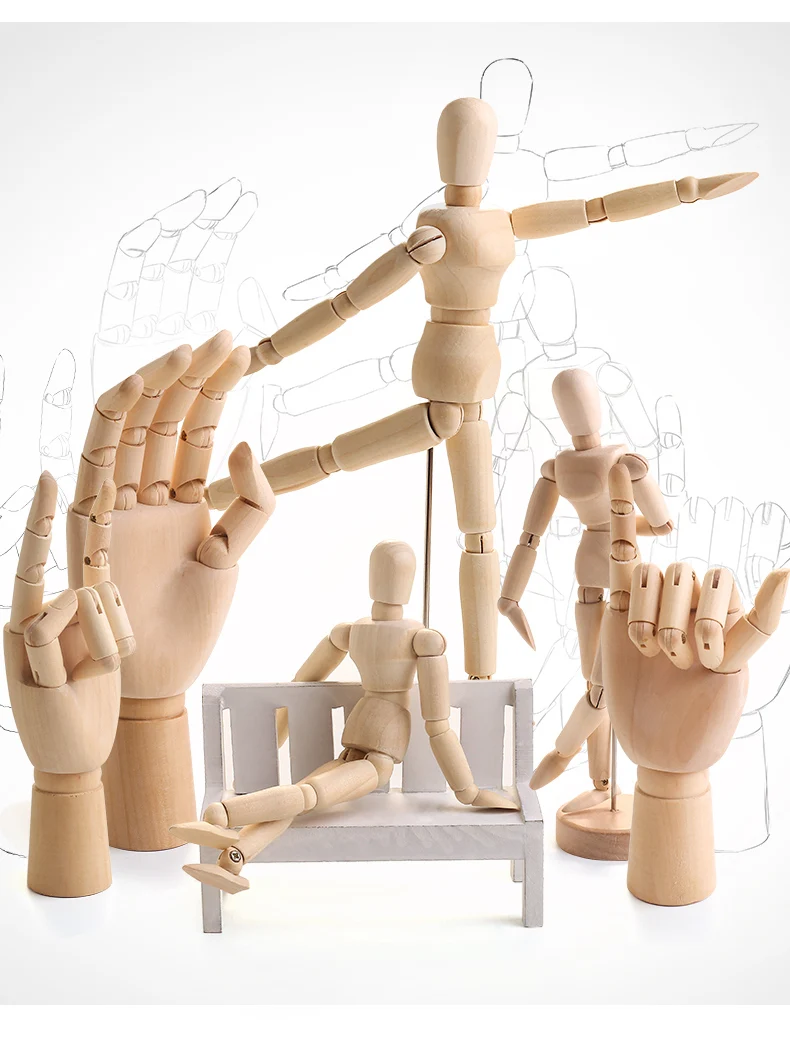 -Манекен художника сочленен, поэтому он может имитировать позы, действия и положения человеческого тела.