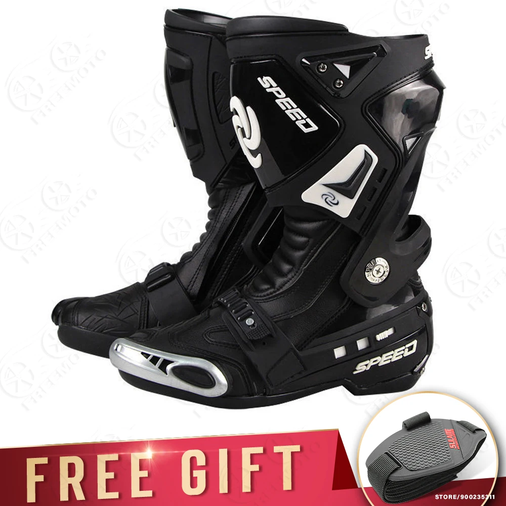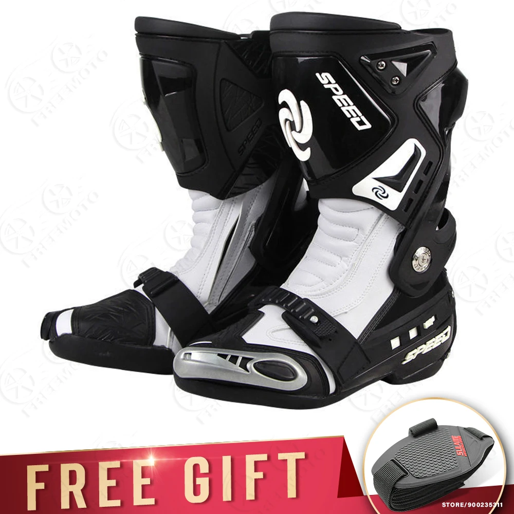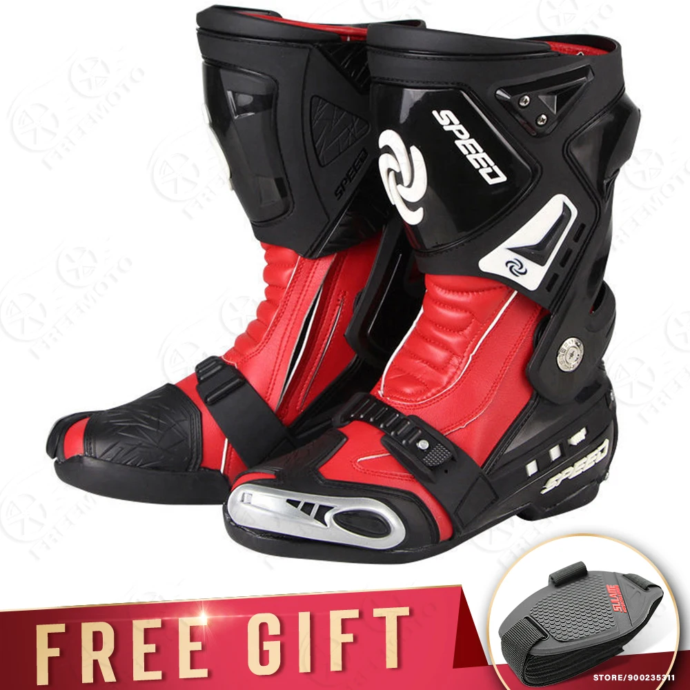 Описание:Материал верхней части: кожа из сверхвысокого волокнаПодкладка: 100% нейлонПодошва: резинаВысококачественные ботинки Gore Tex. Удобно и безопасно для езды на улице или на трассе в течение всего дня. Очень высокий материал из волокнистой кожи более прочный и дышащий, чем кожа. Удобно ходить.1. Высокоскоростная система вентиляции2. Двойной ТПУ инъекции анти-шок буферный дизайн защита голени.3. Система защиты от ударов по лодыжку4. Высокая износостойкая Нейлоновая Молния и эластичная регулировка на липучке, более удобно носить и снимать.5. Новое поворотное эластичное регулирующее устройство, удобно регулировать и удобно носить.6. Сменные ползунки7. Нескользящая конструкция сдвигаЦвет: черный/красный/белыйРазмер: 40/41/42/43/44/45В комплект входит: 1 пара мотоциклетных сапогОбратите внимание: пожалуйста, выберите сапоги по длине стельки, спасибо
