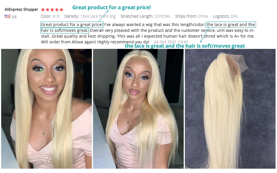 Allove 613, парик на сетке спереди, прямой парик на сетке спереди 1...