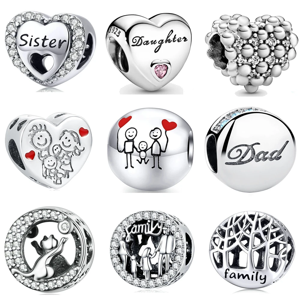 XNMY выдалбливают семейное дерево, Папа, мама сестра бусин, подходят для оригинальных шармов Пандора, серебряный браслет, женский браслет «сделай сам», ювелирные изделия