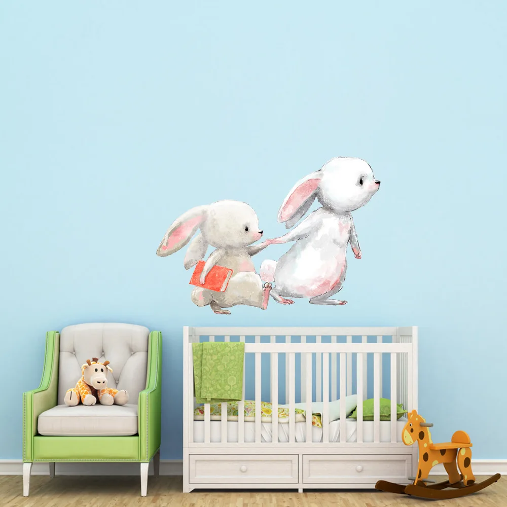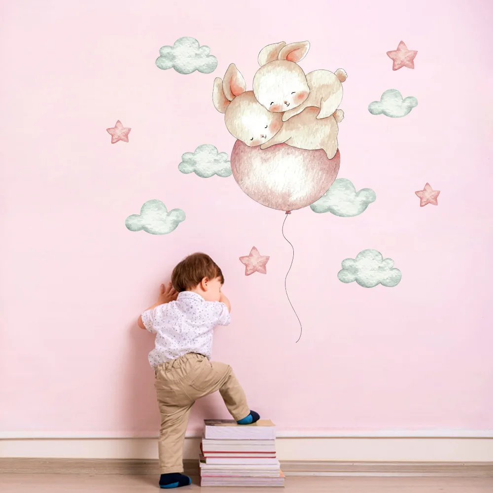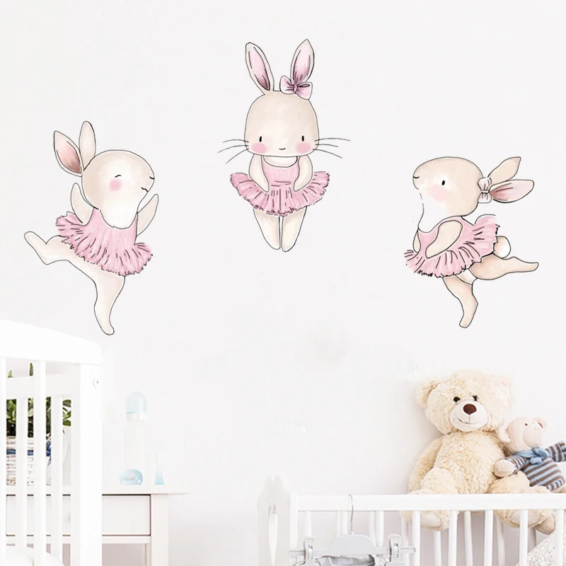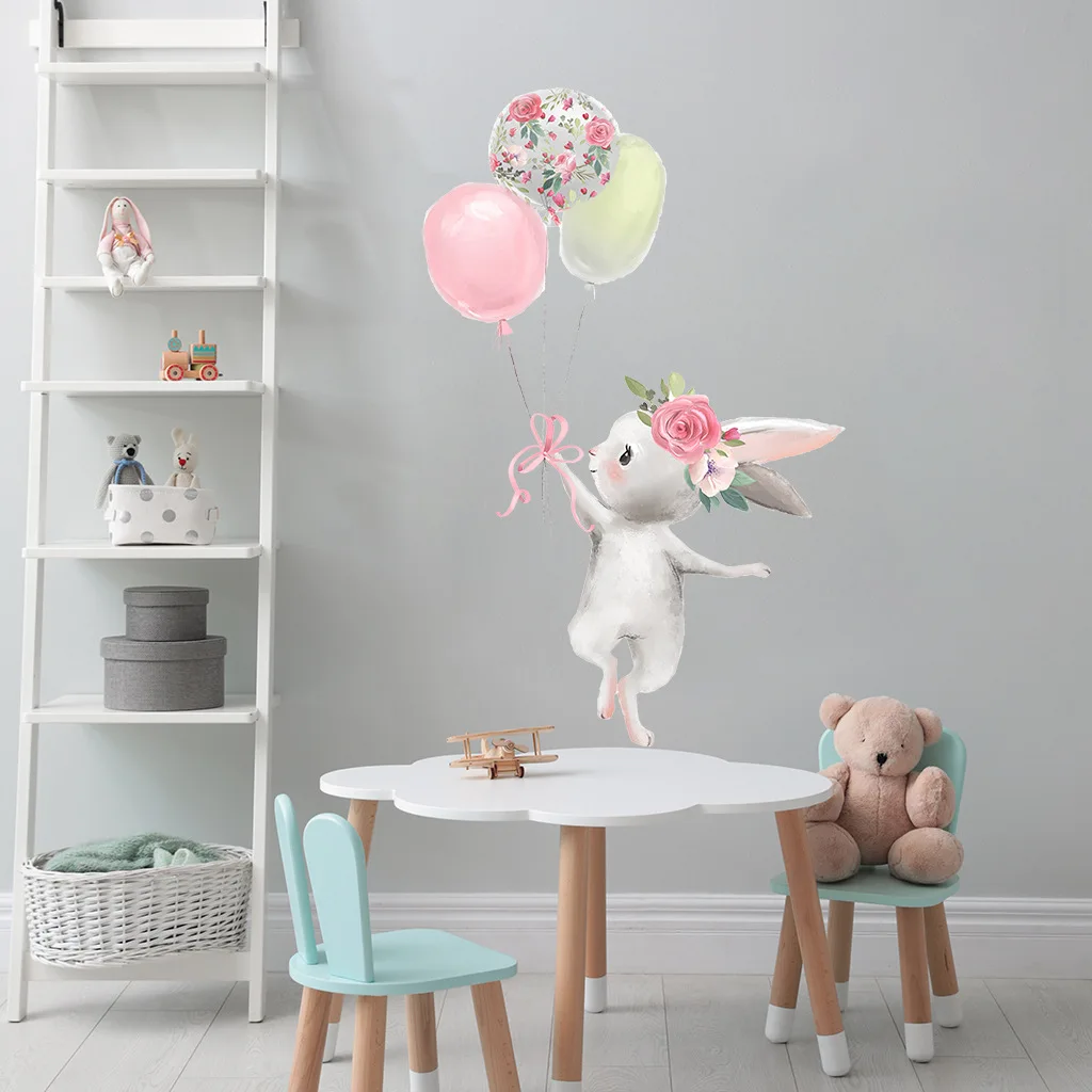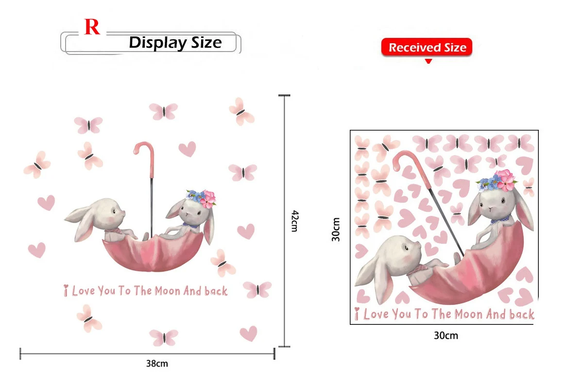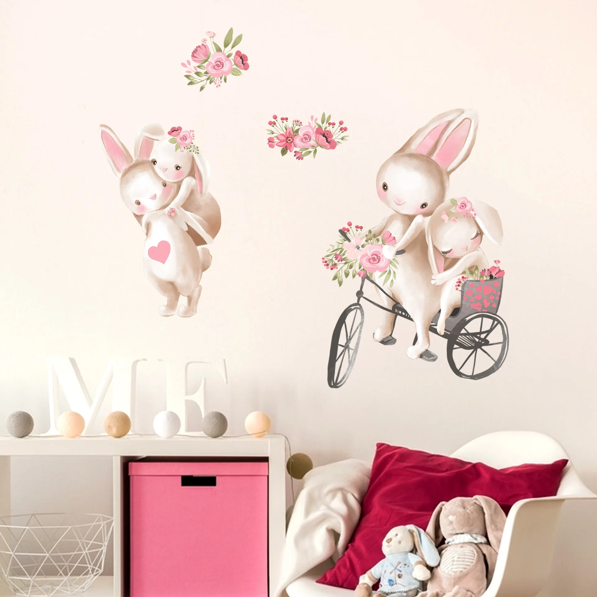 Милый кролик, цветок, настенные наклейки для детей, девочек, для детской комнаты, спальни, детской комнаты, Декор, Мультяшные животные, обои, виниловые, пасхальные украшения