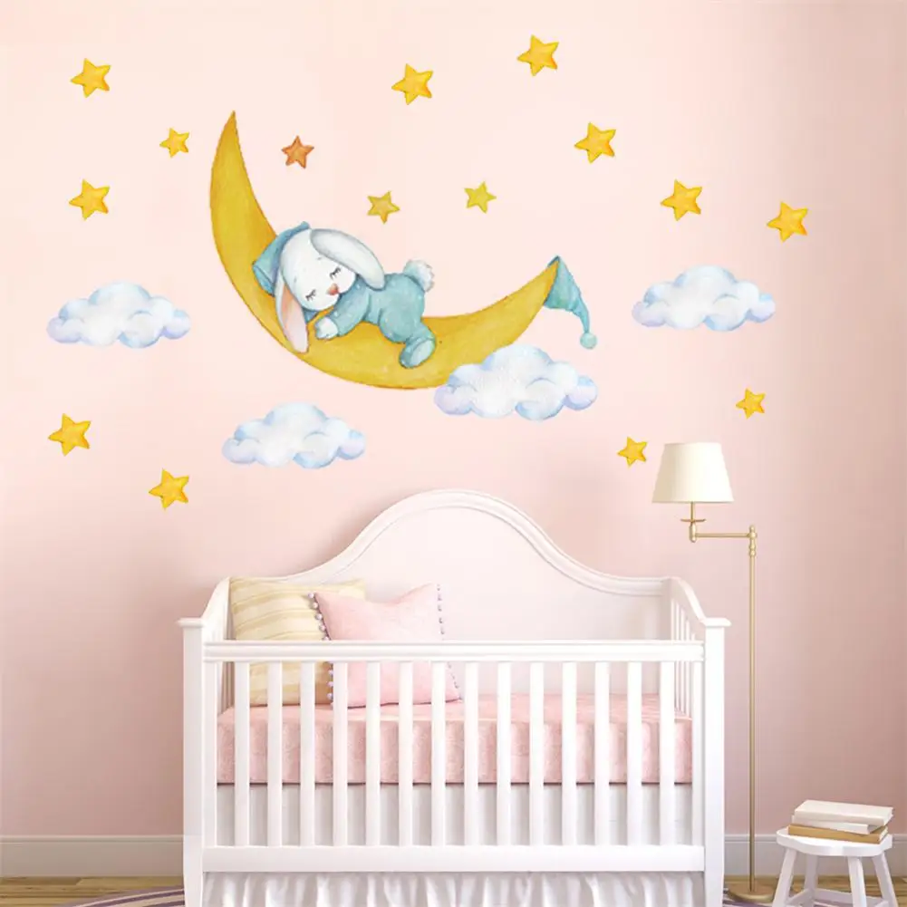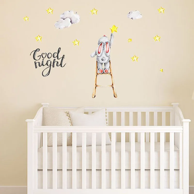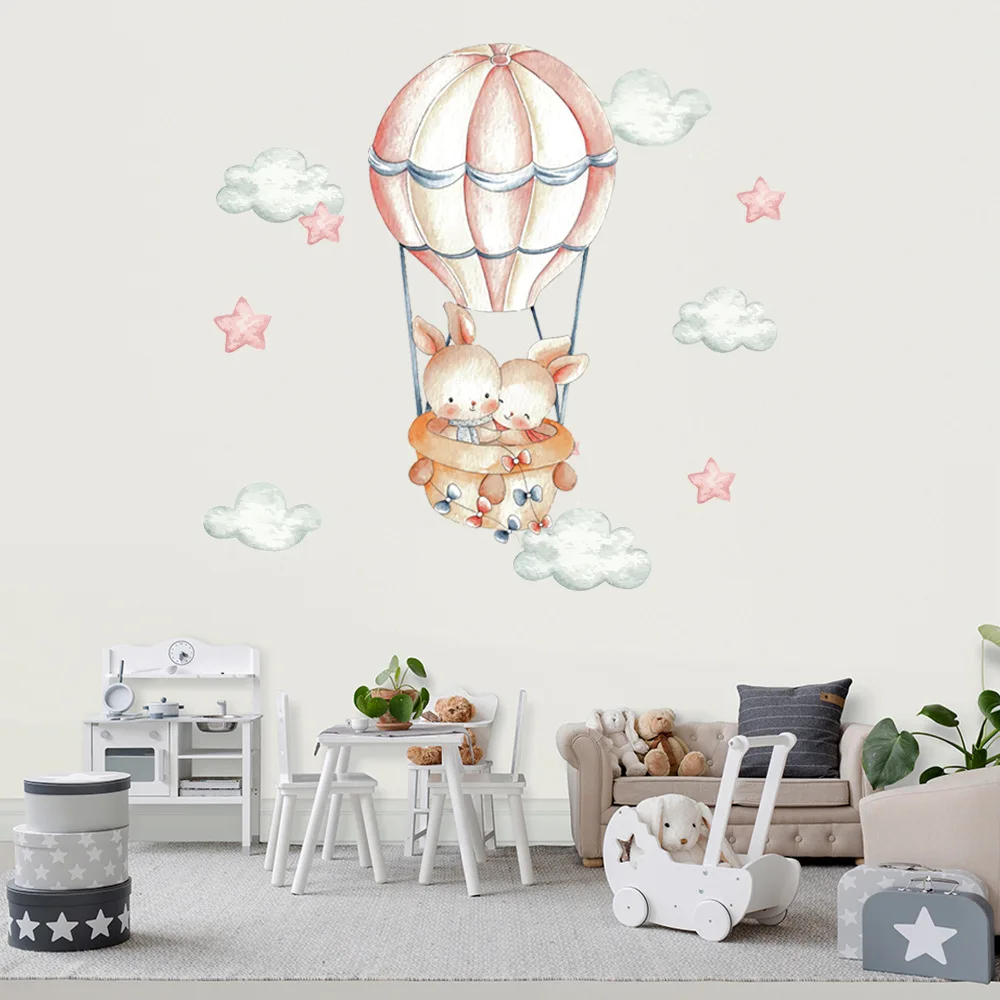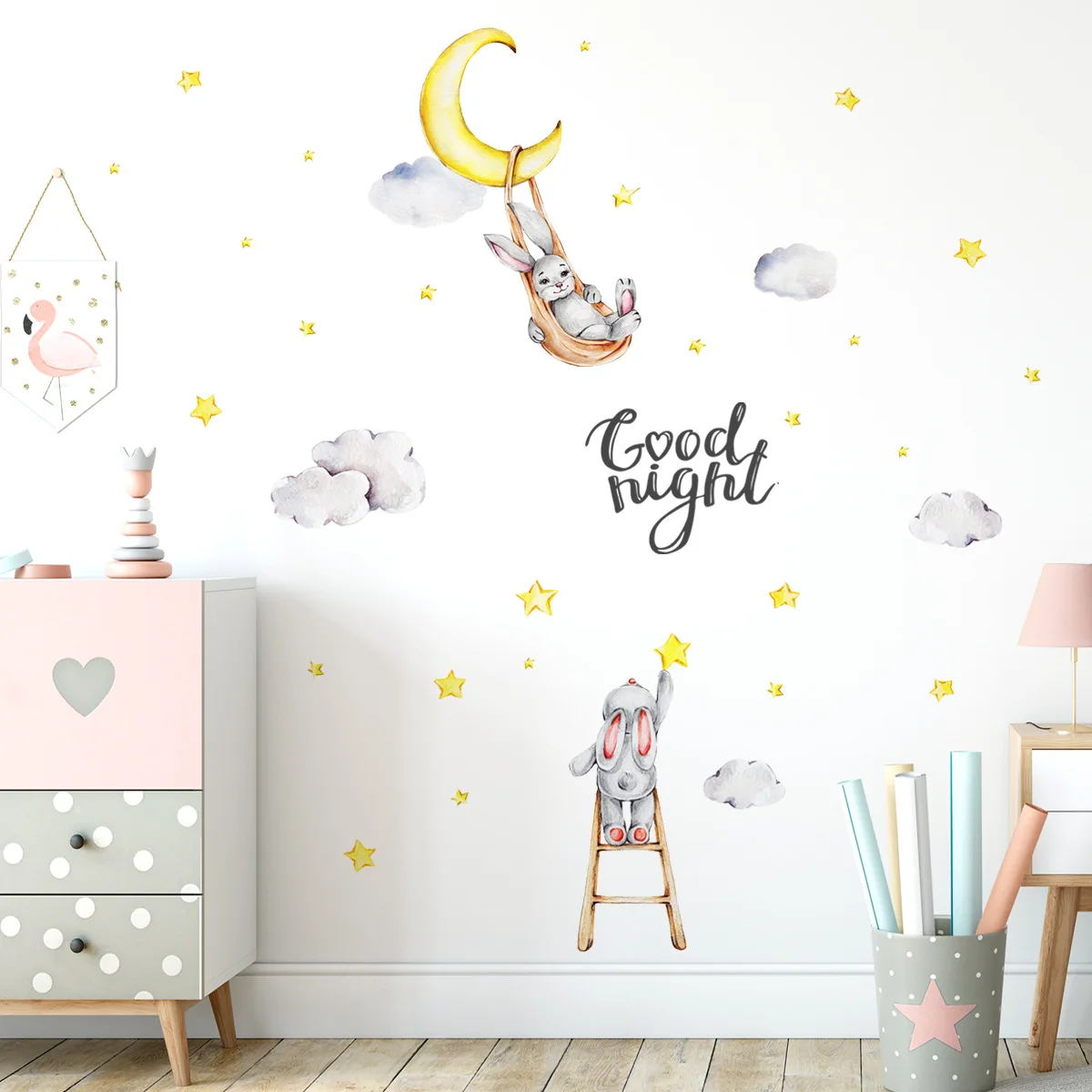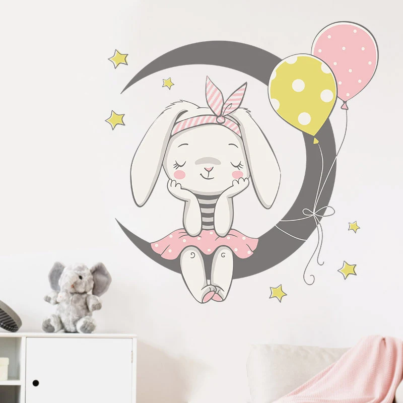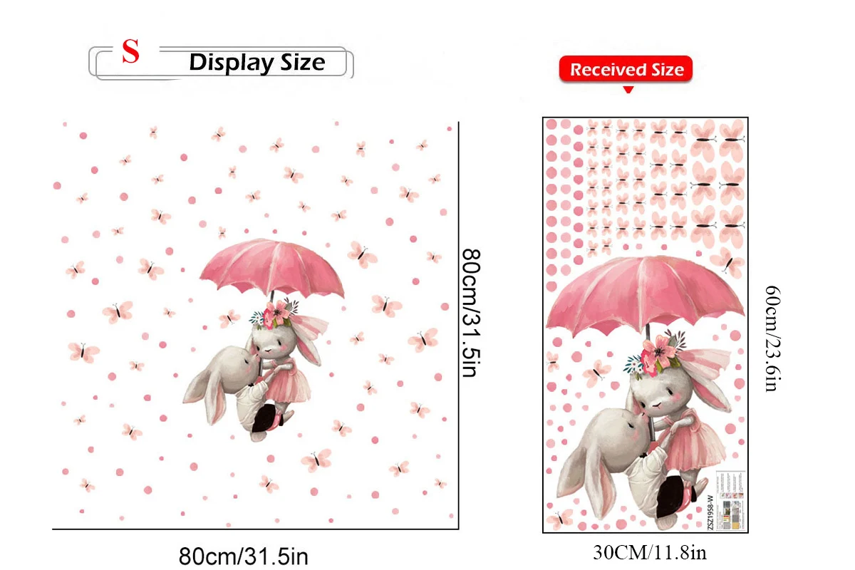 Милый кролик, цветок, настенные наклейки для детей, девочек, для детской комнаты, спальни, детской комнаты, Декор, Мультяшные животные, обои, виниловые, пасхальные украшения