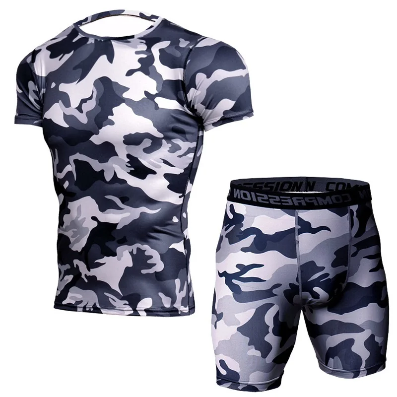Комплект спортивный мужской компрессионный, рубашка с коротким рукавом и шорты для фитнеса, облегающие джоггеры с принтом, комплект из 2 предметов, на лето