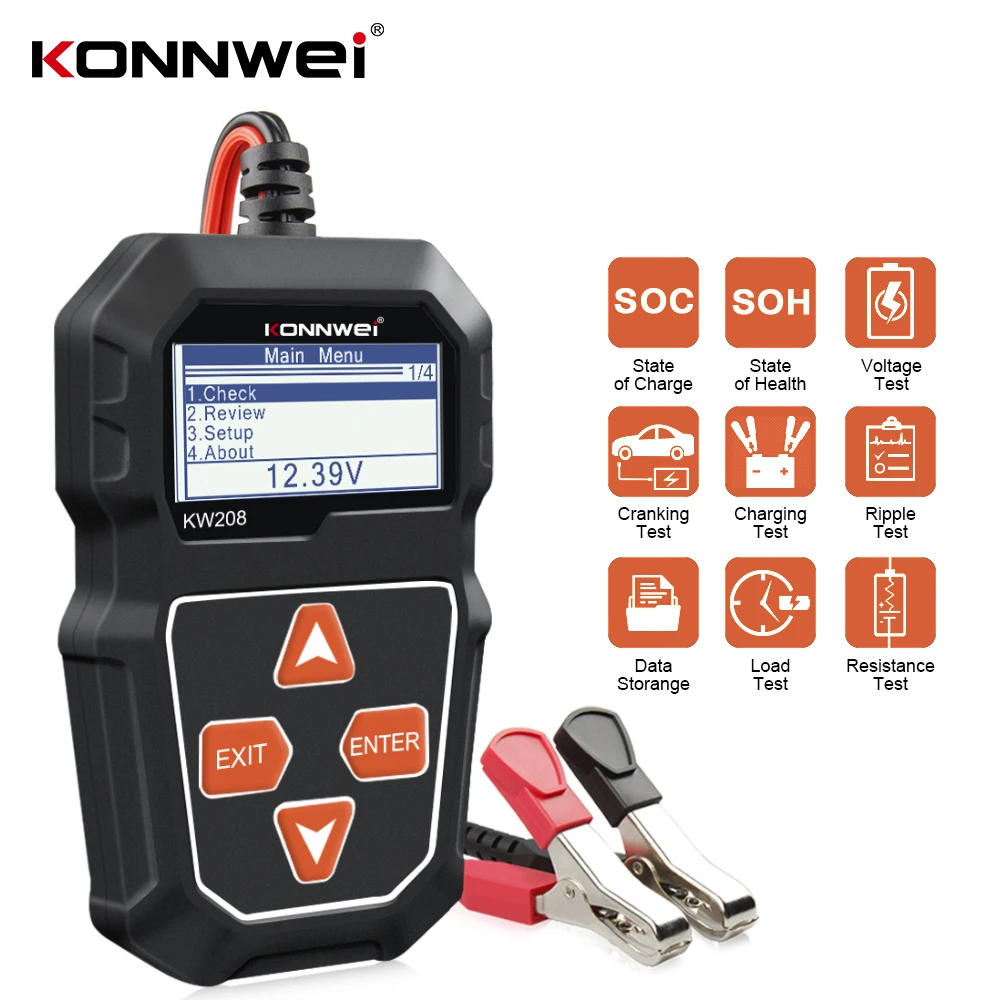 Автомобильный анализатор аккумулятора KONNWEI KW208, автомобильный тестер, тестер свинцово-кислотных и влажных аккумуляторов, 12 В, инструмент для диагностики автомобиля