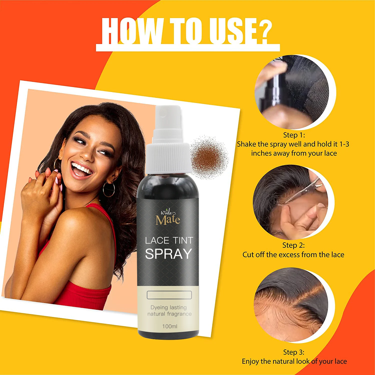 Оптовая продажа, индивидуальный лейбл, кружевной оттенок, спрей для париков, фронтальный кружевной краситель, спрей, кружевной оттенок, пена, мусс, средне-коричневый светильник, коричневый цвет