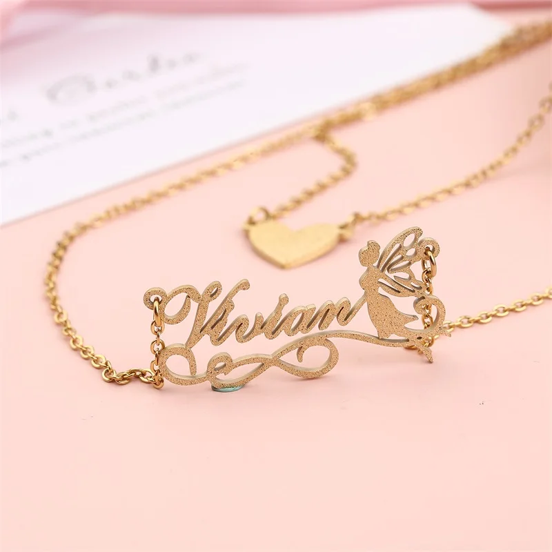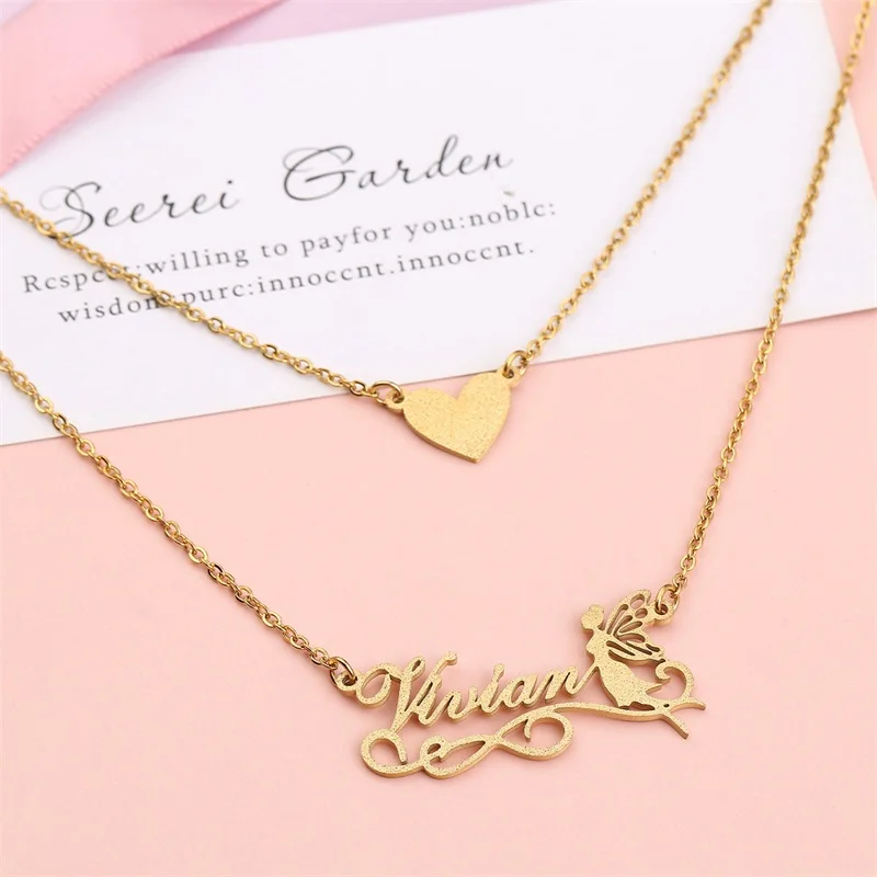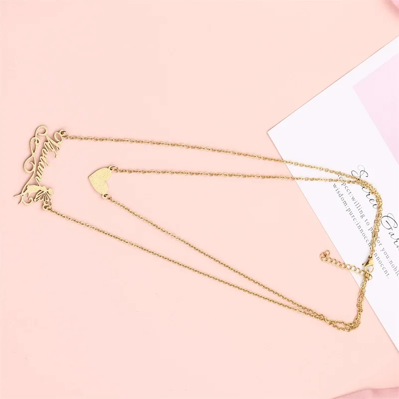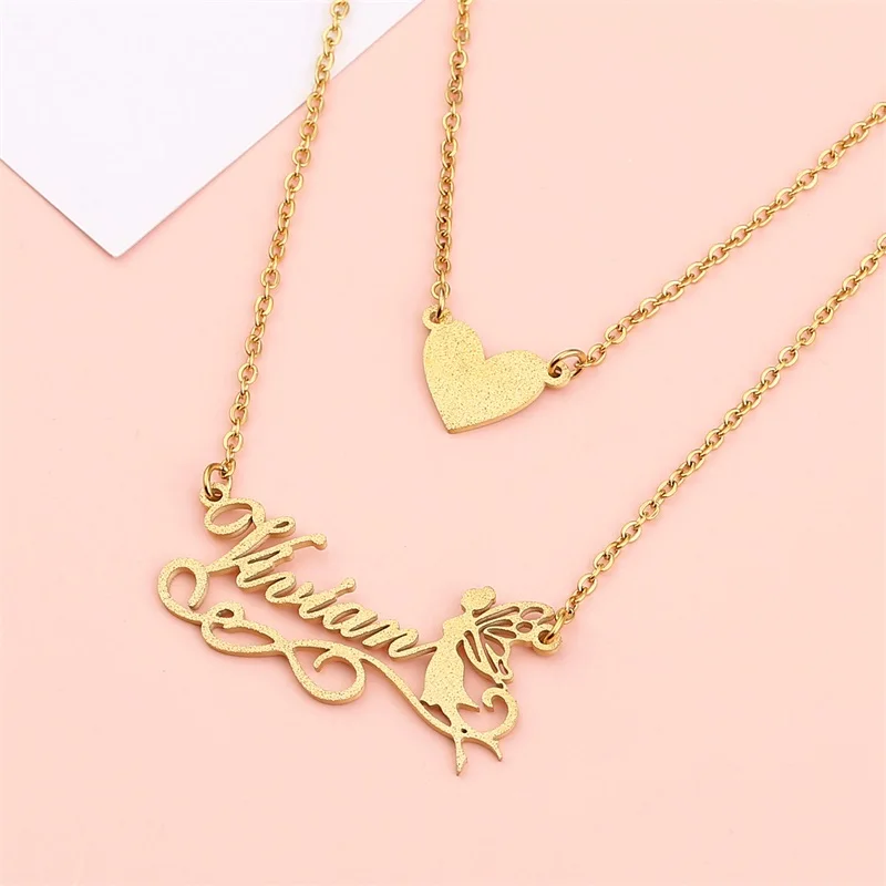 Индивидуальное модное Двухслойное ожерелье с именем для женщин, персонализированное ожерелье из нержавеющей стали под заказ с золотым сердцем и матовой подвеской
