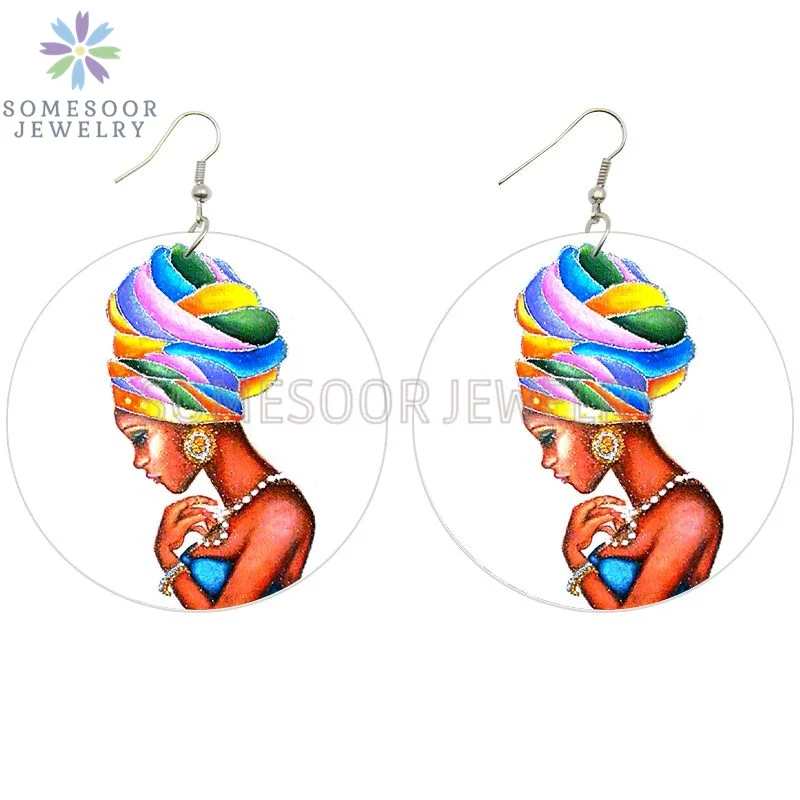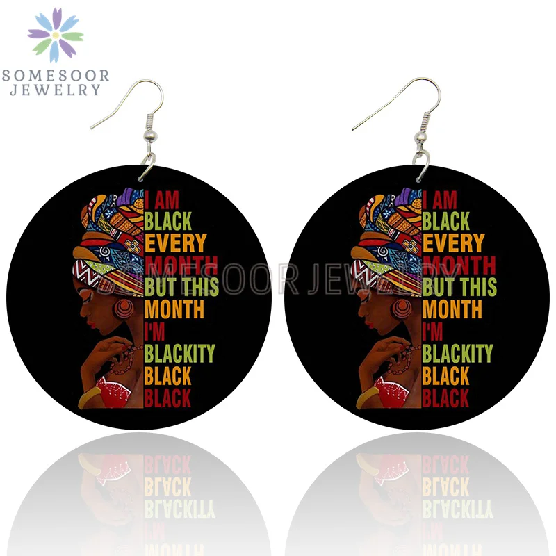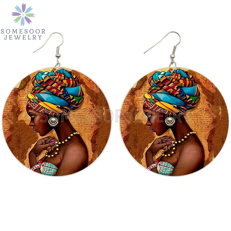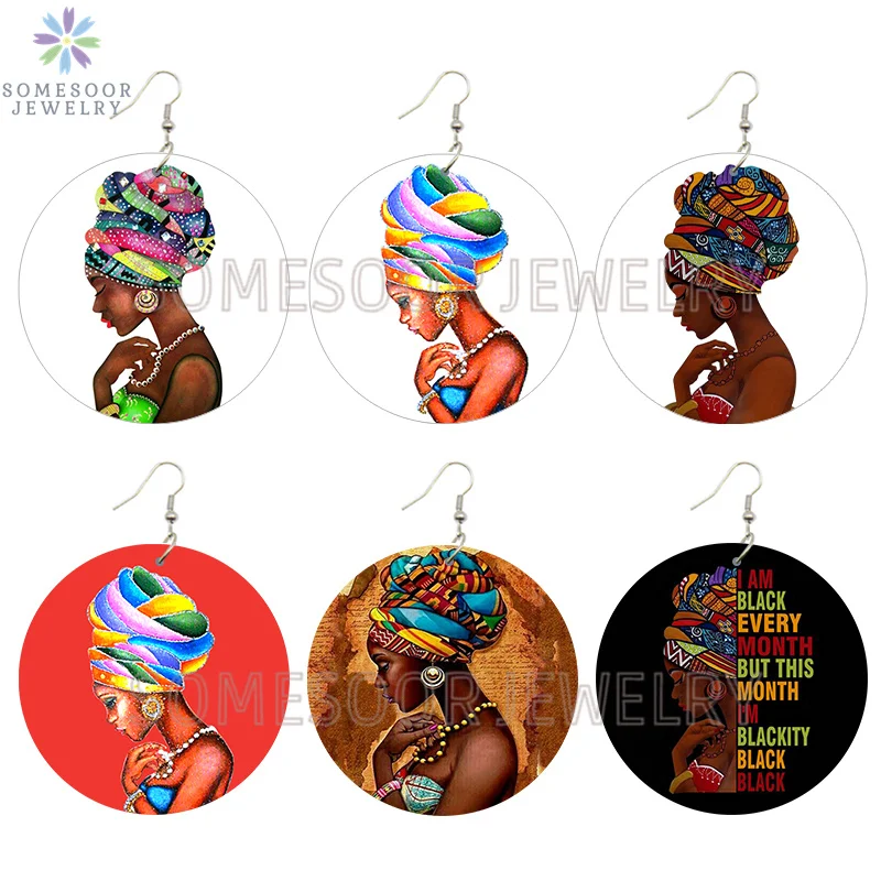 SOMESOOR афро этнический головной убор женские художественные деревянные висячие серьги черные каждый месяц африканские петли с принтом Висячие Ювелирные изделия Подарки