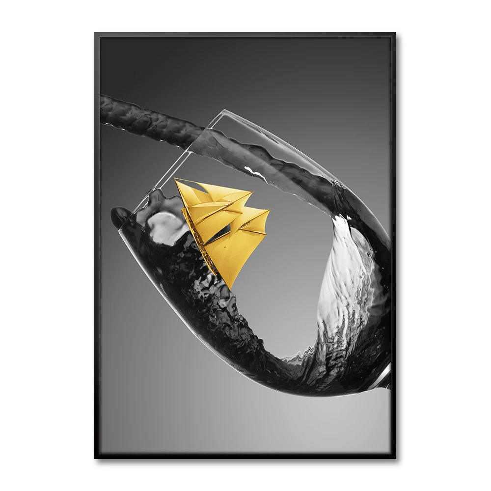 Винный бокал с маленькой лодкой, плакаты и принты, Картина на холсте, настенное искусство, холст, картины для гостиной, домашнее украшение для кухни