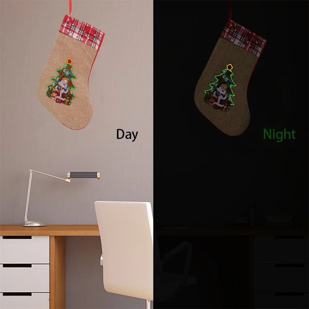 Светящиеся рождественские носки Сделай Сам 5D алмазная картина муль...