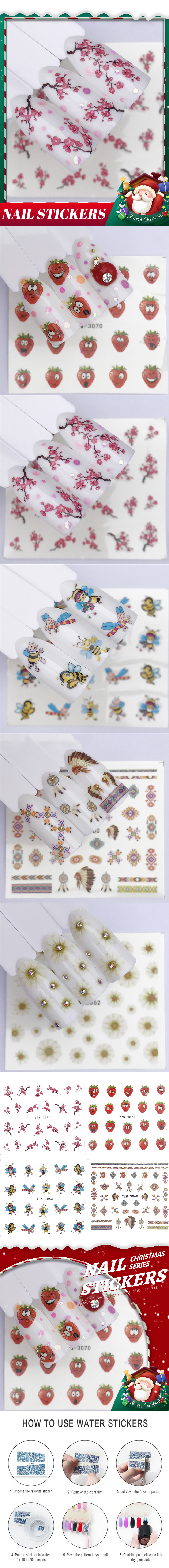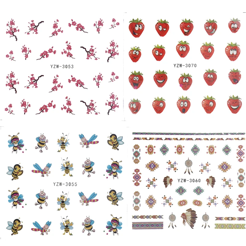 Лидер продаж, маленькая наклейка для наращивания ногтей с цветком сливы, водная переводная наклейка для ногтей с маленькой Пчелкой и клубникой