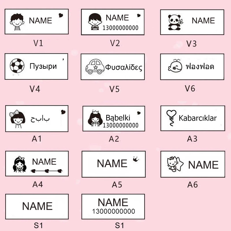 1. Подходит для хлопка/модальной ткани. 2. Пожалуйста, подтвердите, что у вас достаточно практики, штамп не может удалить после того, как вы запечатали. 3. Только шаблон A2/V2/S1/M6/M7 может добавить номер телефона. 4. Для достаточно ясности, пожалуйста, укажите имя в 12 буквах