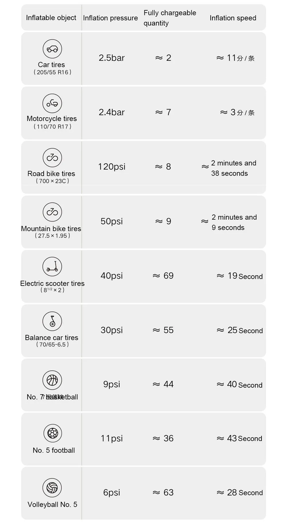 Оптимизируйте производительность движения, срок службы полностью заряженного аккумулятора может быть увеличен примерно на 45.4%, и он может быть заполнен 2 автомобильными шинами с нулевым давлением воздуха примерно за 11 минут, или надули 8 автомобильных шин с недостаточным давлением воздуха.