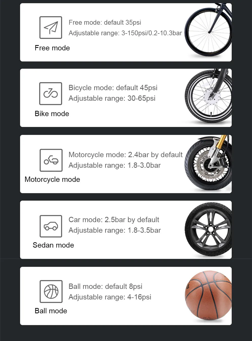 Используя высокоточные литые цилиндры из сплава, это занимает всего 20 секунд для давления от 0psi до 150psi, который может удовлетворить высокое давление воздуха, требуемое амортизаторами воздуха для горного велосипеда и шины для шоссейного велосипеда.