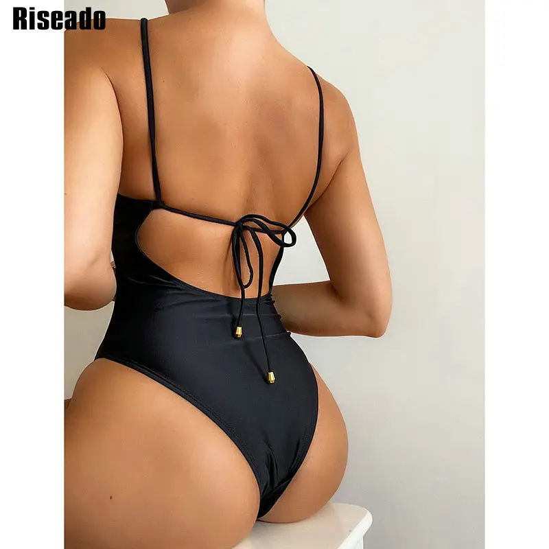 Riseado сексуальный цельный купальник, черный купальник для женщин, новинка 2022, монокини с открытой спиной, боди, женский купальный костюм, высокая пляжная одежда