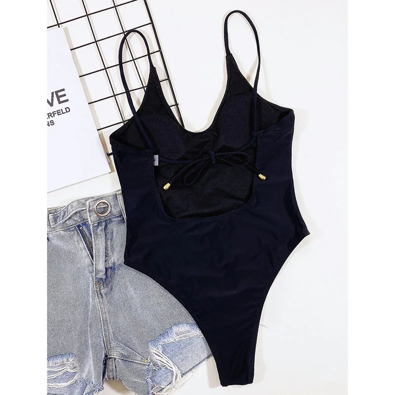 INGAGA сексуальный слитный купальник с V-образным вырезом, черный к...