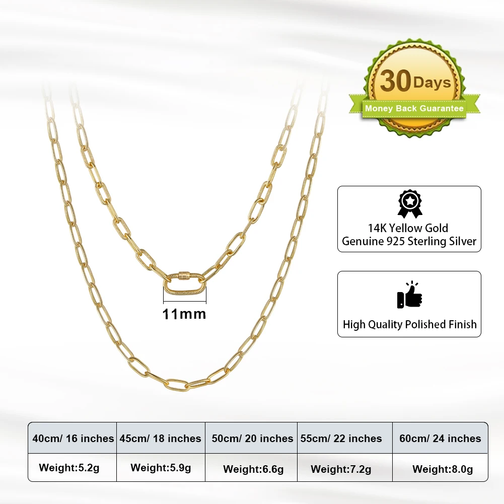Длина цепочки: 16 дюймов (40 см),18 дюймов (45 см), 20 дюймов (50 см), 22 дюйма (55 см), 24 дюйма (60 см)