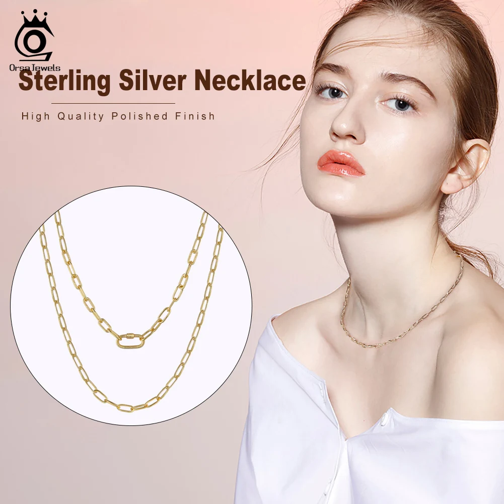 ORSA JEWELS 925 Серебряная цепочка-пресс-папье ожерелье с защитным винтовым замком 3,2x7,5 мм цепочка на шею для женщин и мужчин ювелирные изделия SC50