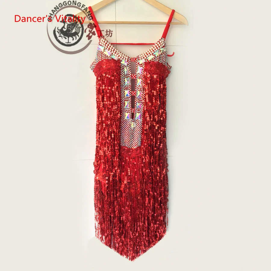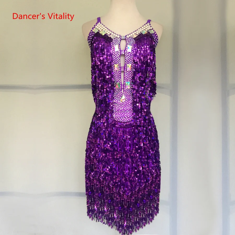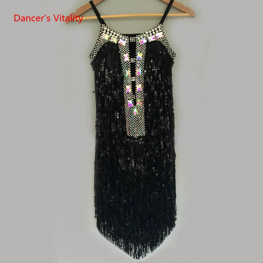 Платье для латинских танцев, юбка с бриллиантами и кисточками, одеж...