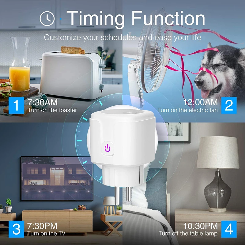 С помощью смартфона или планшета удаленно Управляйте смарт-вилкой wifi с помощью бесплатного приложения smart Life или TuyaSmart из любого места в любое время. Легко управлять бытовой техникой.