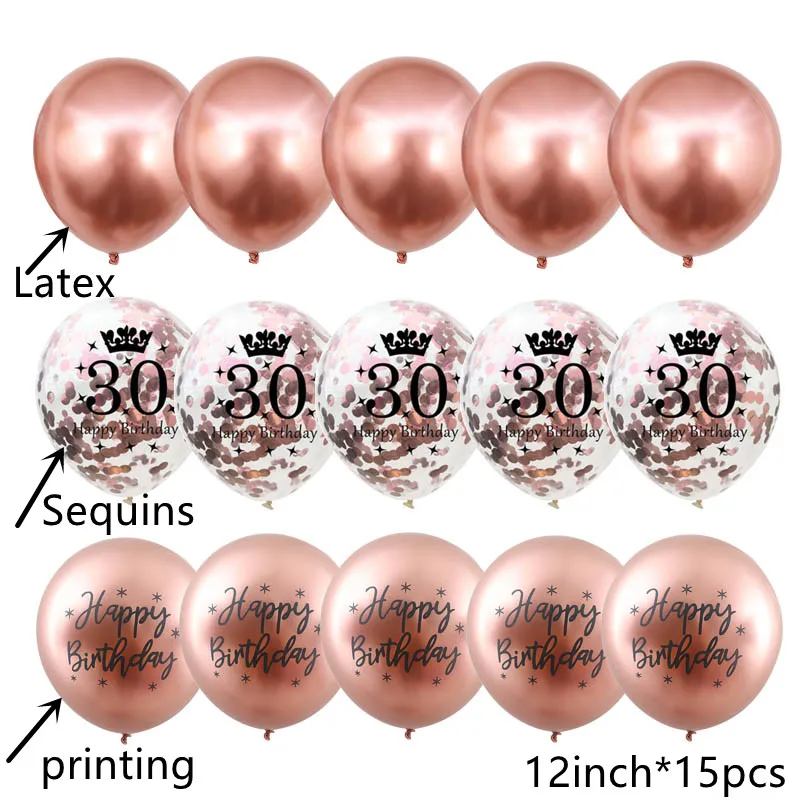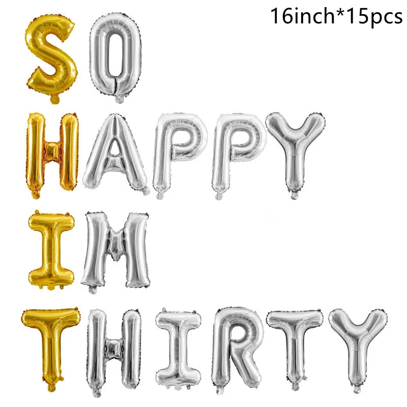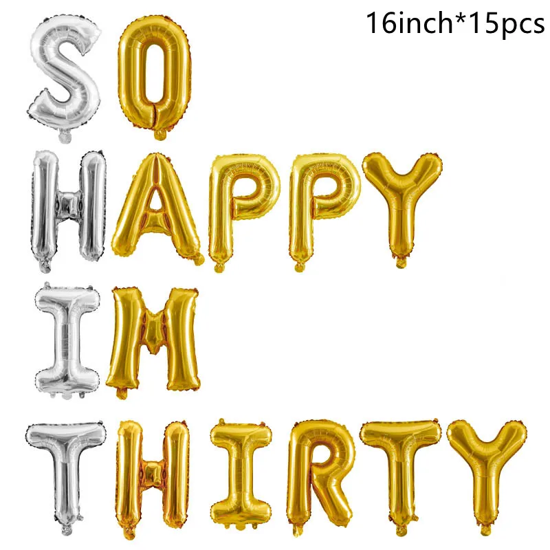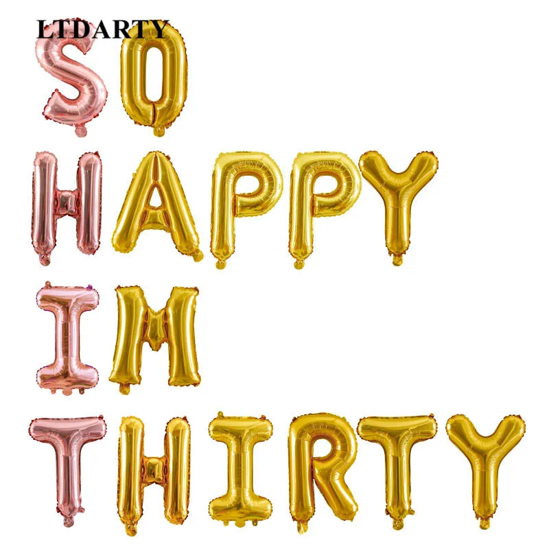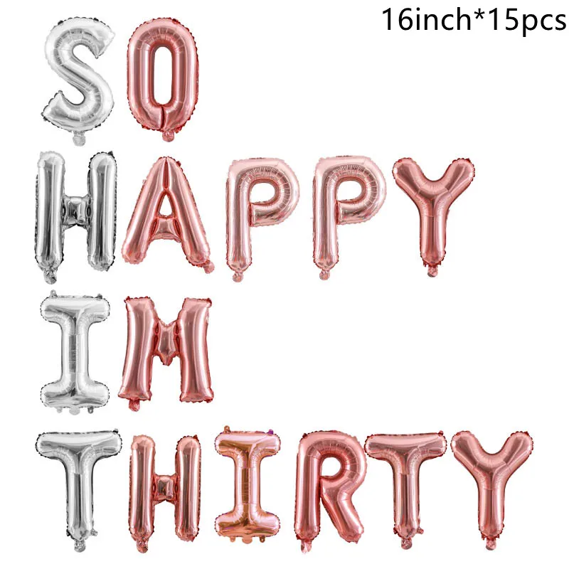 15 шт., 16 дюймов, розовое золото, фольга, буквы, шар, баннер, 30-й день рождения, украшение для вечеринки, так счастлив, я тридцать 12 дюймов, золотой воздушный шар с блестками