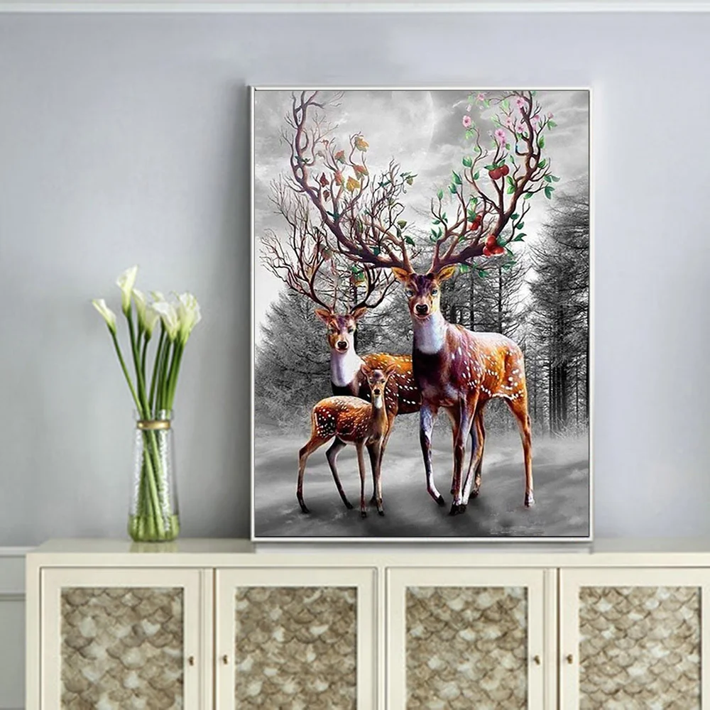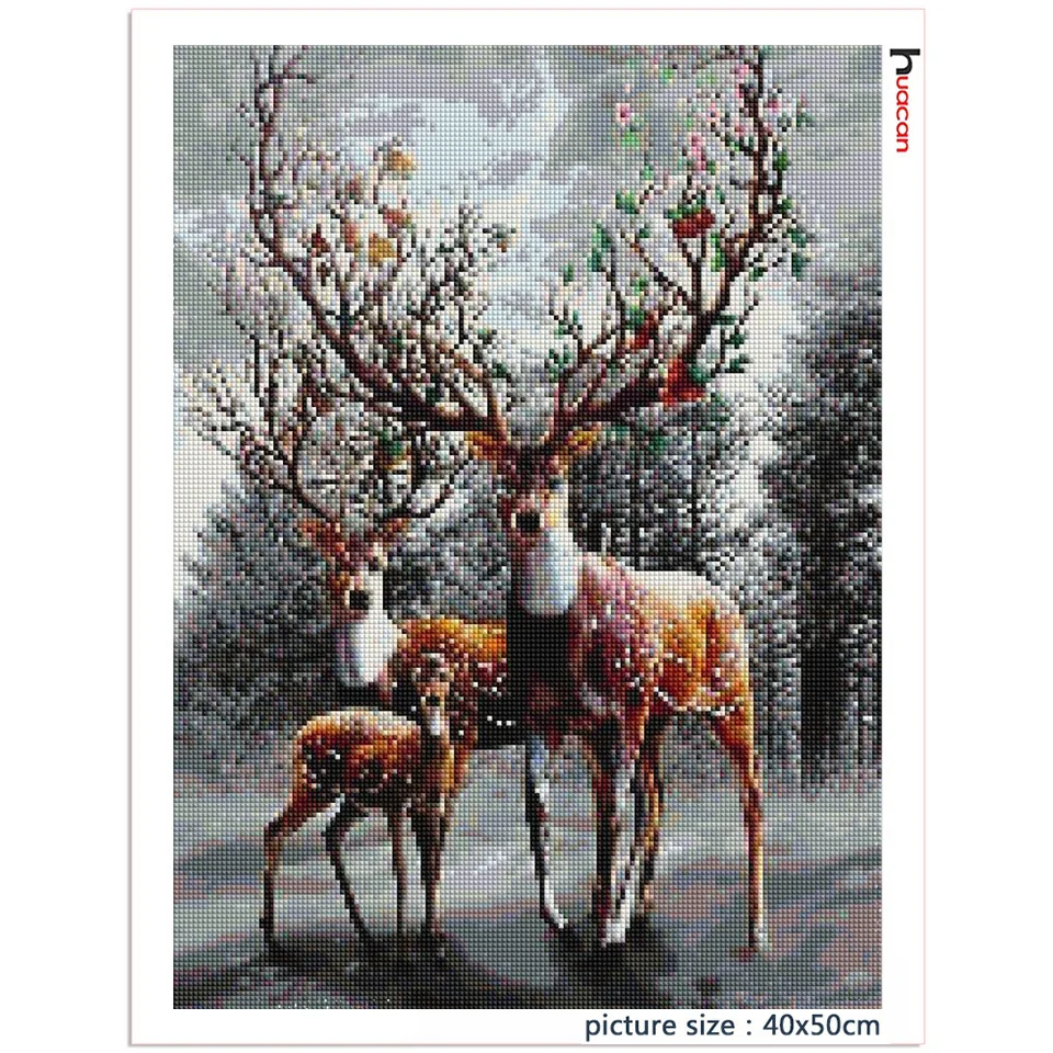 Алмазная живопись 5d сделай сам Huacan, вышивка с оленем, мозаика с изображением животных, дерева, стикер для вышивки крестиком, Декор