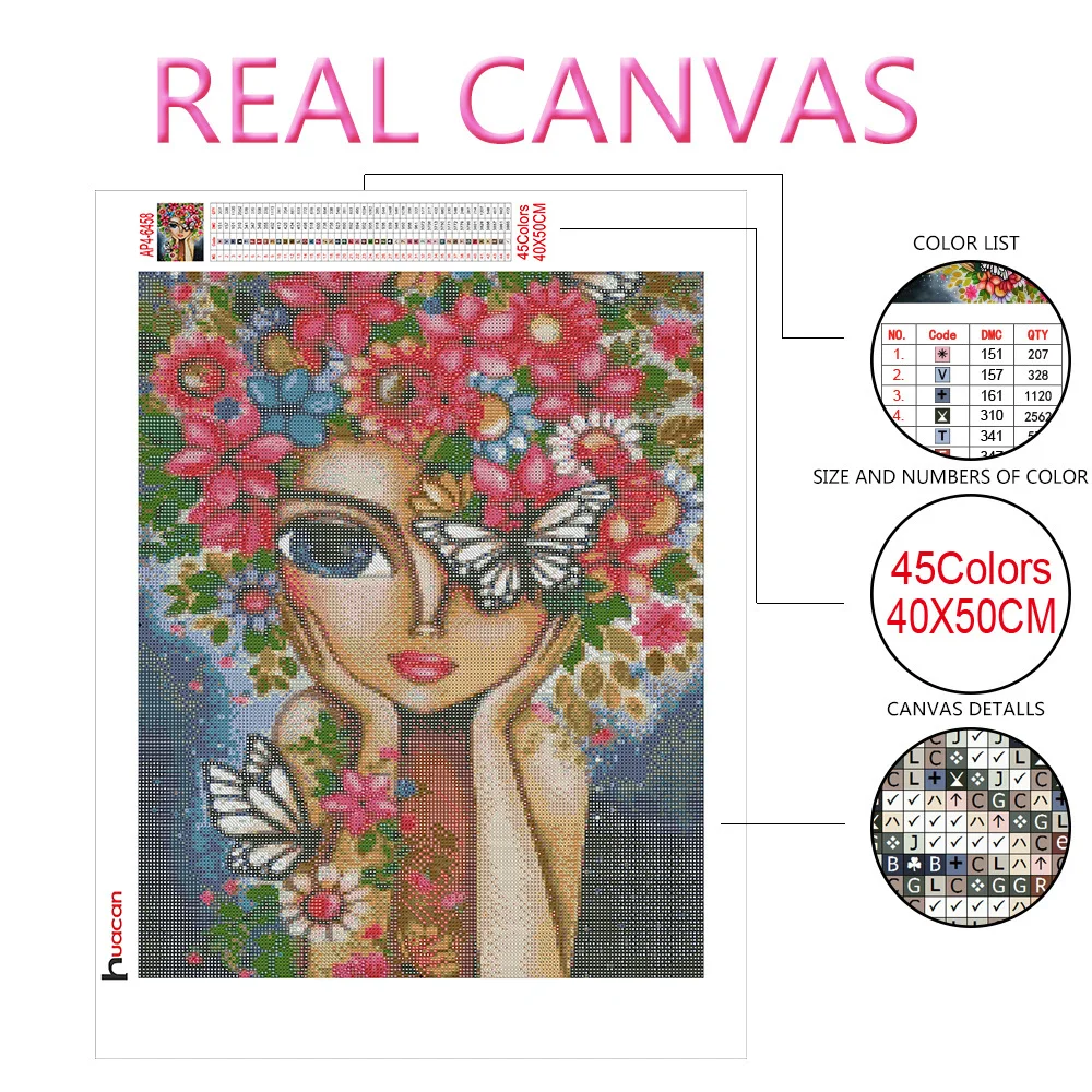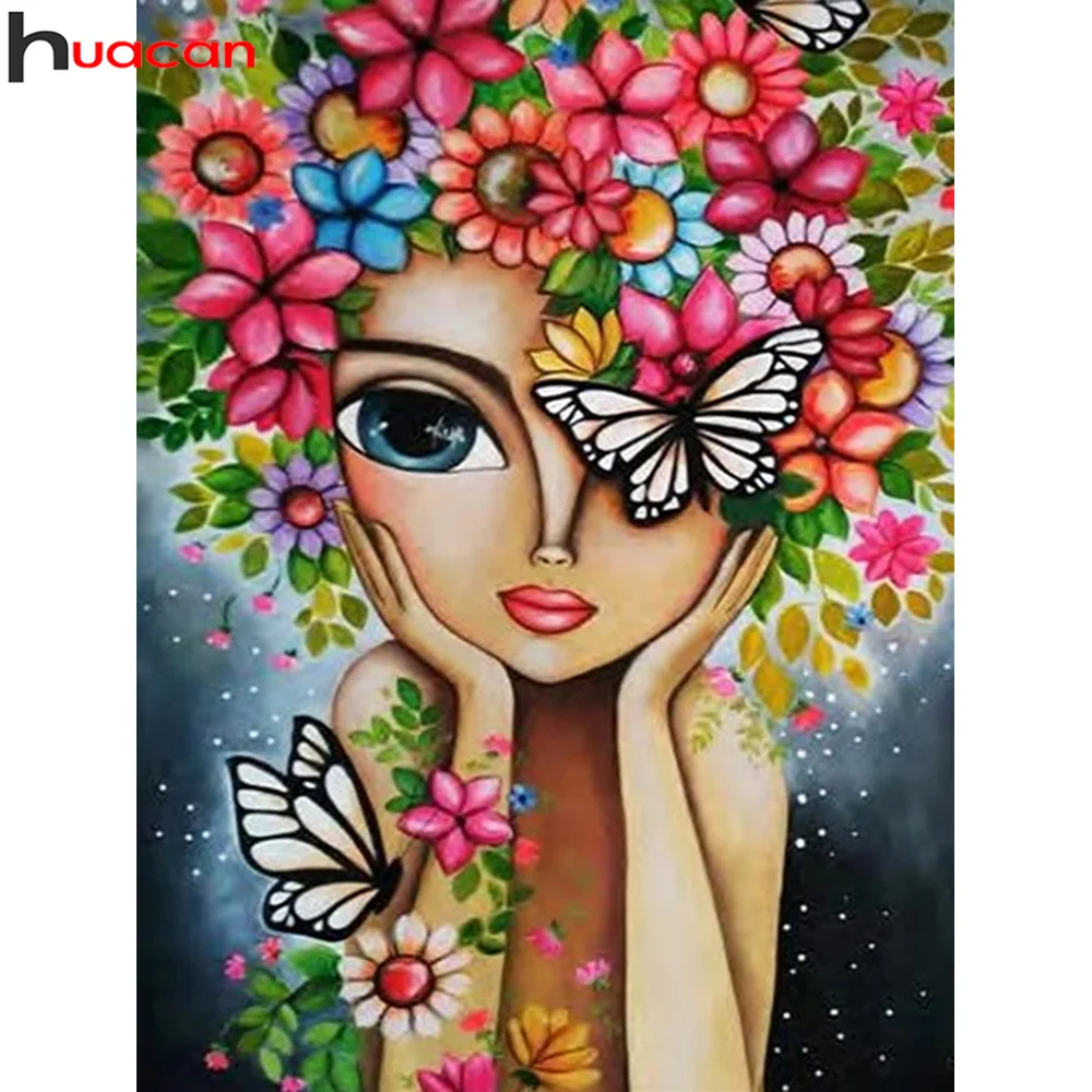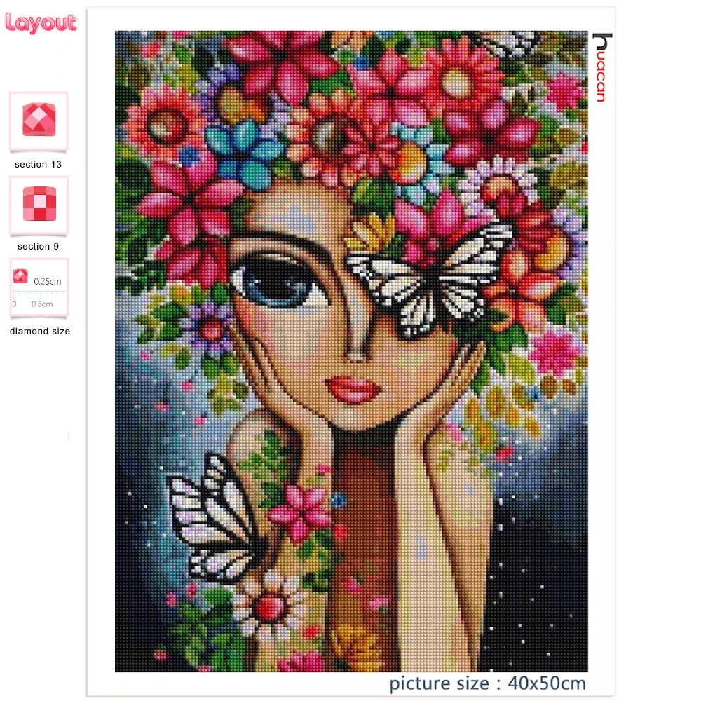 Алмазная 5d картина Huacan сделай сам, мультяшная девушка, алмазная вышивка, мозаика, цветок, женщина, вышивка крестиком, домашний декор, Алмазное искусство