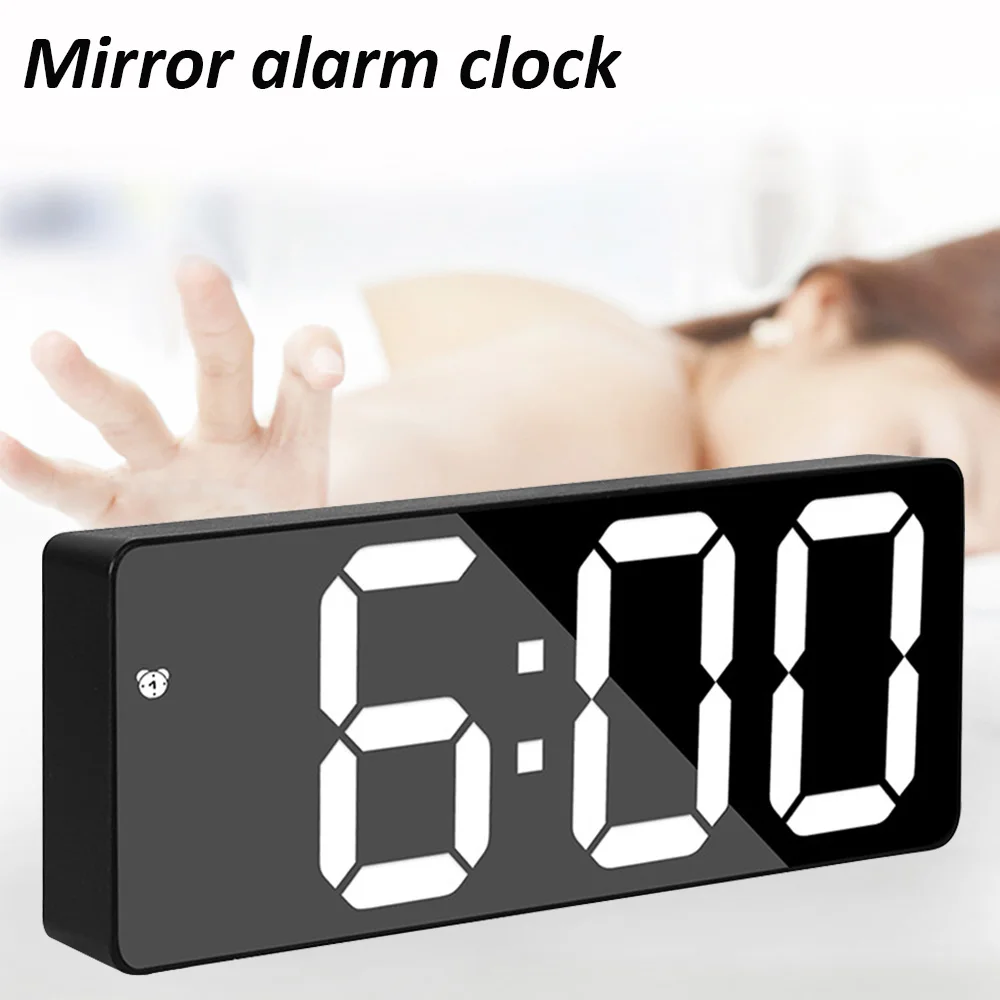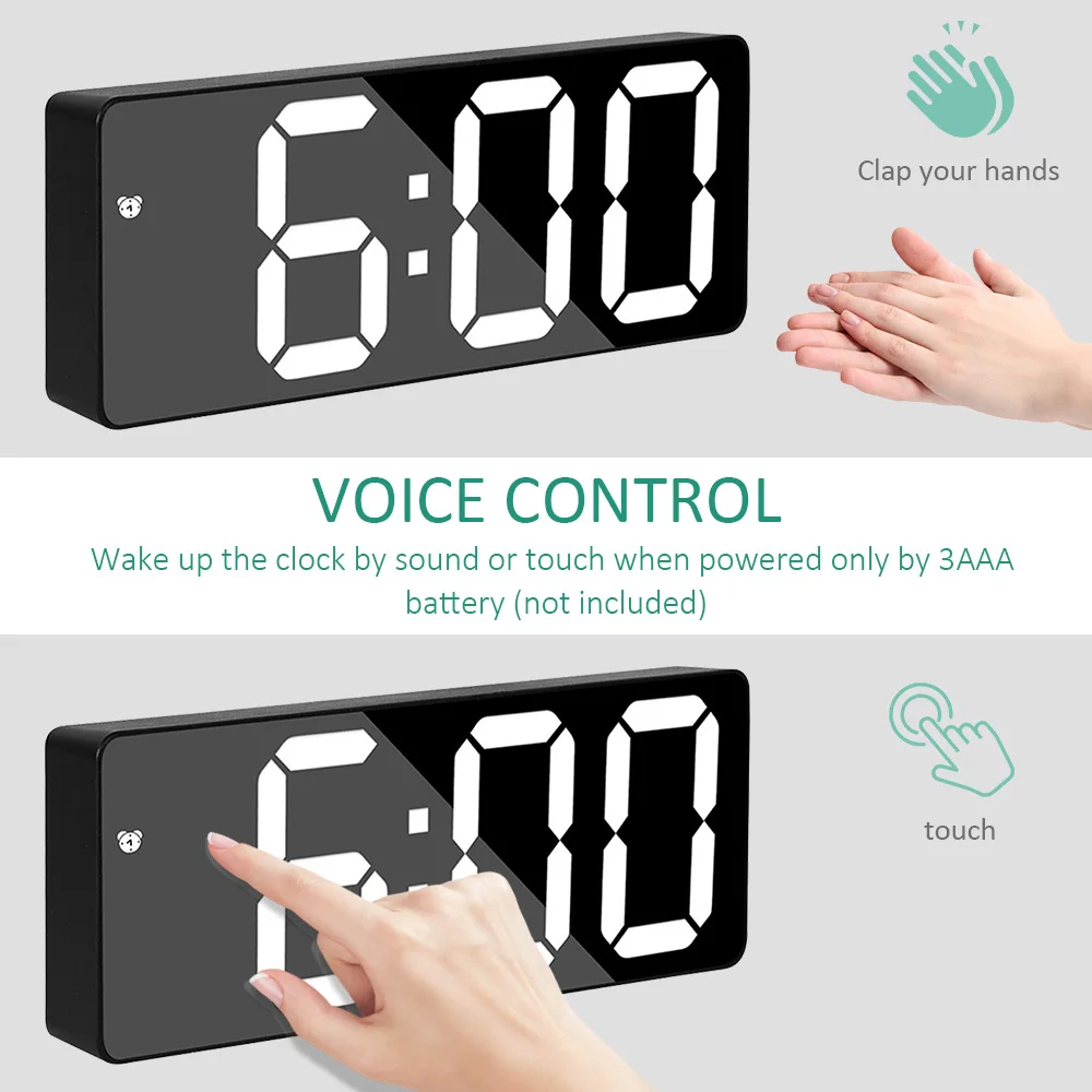Светодиодный дисплей, зеркальные часы, USB цифровой будильник, дисплей температуры, голосовое управление, функция запоминания времени, светодиодсветодиодный электронные часы