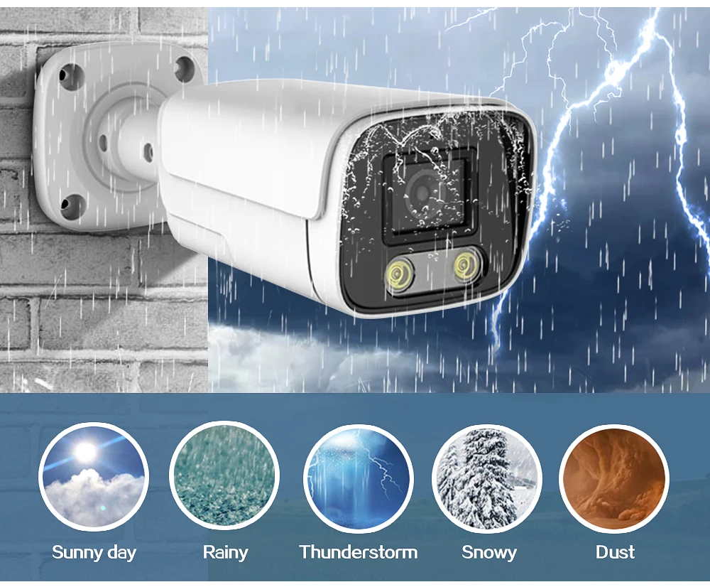 Используйте их в качестве наружных камер или крытых камер, так как они построены жестко, выдерживает любую погоду: дождь, снег, пыль и жаркие дни. С защитой от атмосферных воздействий IP66 и кабелями, просвечивающимися через подставку для защиты, гарантируем, что вы сможете ответить на их производительность, день в день. Наша камера имеет сверхпрочный металлический корпус, профессиональный IP66, устойчивый к атмосферным воздействиям, обеспечивая стабильную производительность как внутри, так и снаружи.