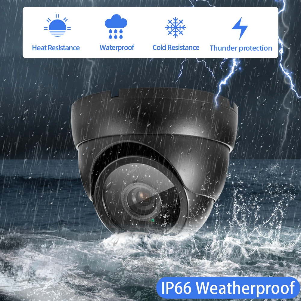 Используйте их в качестве наружных камер или крытых камер, так как они построены жестко, выдерживает любую погоду: дождь, снег, пыль и жаркие дни. С защитой от атмосферных воздействий IP66 и кабелями, просвечивающимися через подставку для защиты, гарантируем, что вы сможете ответить на их производительность, день в день. Наша камера имеет сверхпрочный металлический корпус, профессиональный IP66, устойчивый к атмосферным воздействиям, обеспечивая стабильную производительность как внутри, так и снаружи.
