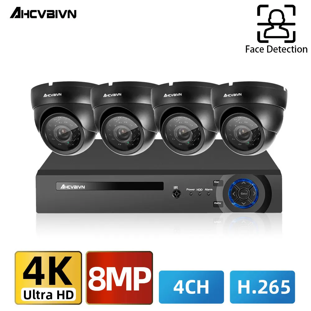 CCTV IP DVR система камер домашней безопасности 4K 4CH DVR комплект 8MP купольная камера система мониторинга ночного видения комплект видеонаблюдения