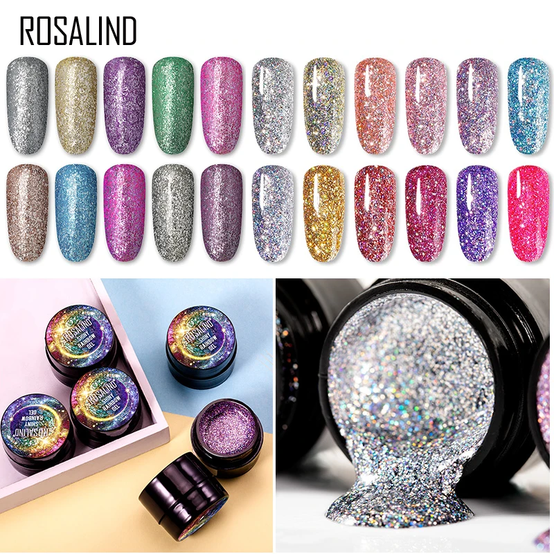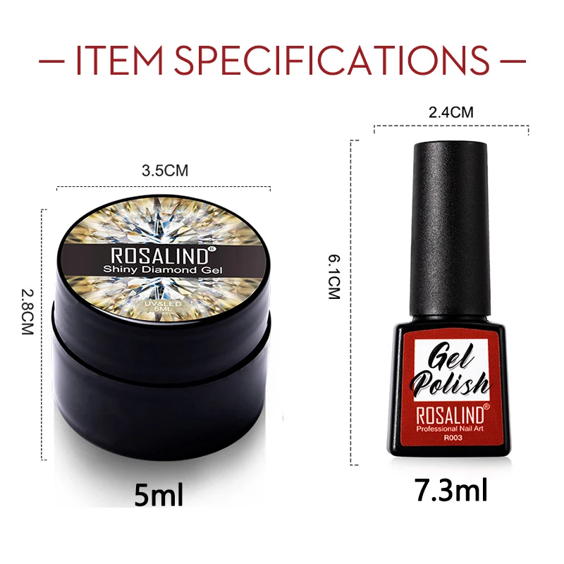 Гель-лак для ногтей ROSALIND, 5 мл, Блестящий Алмазный гель, яркие гибридные Лаки, отмачиваемые светодиодный ные УФ-лампы, базовое и верхнее покрытие для дизайна ногтей, гель