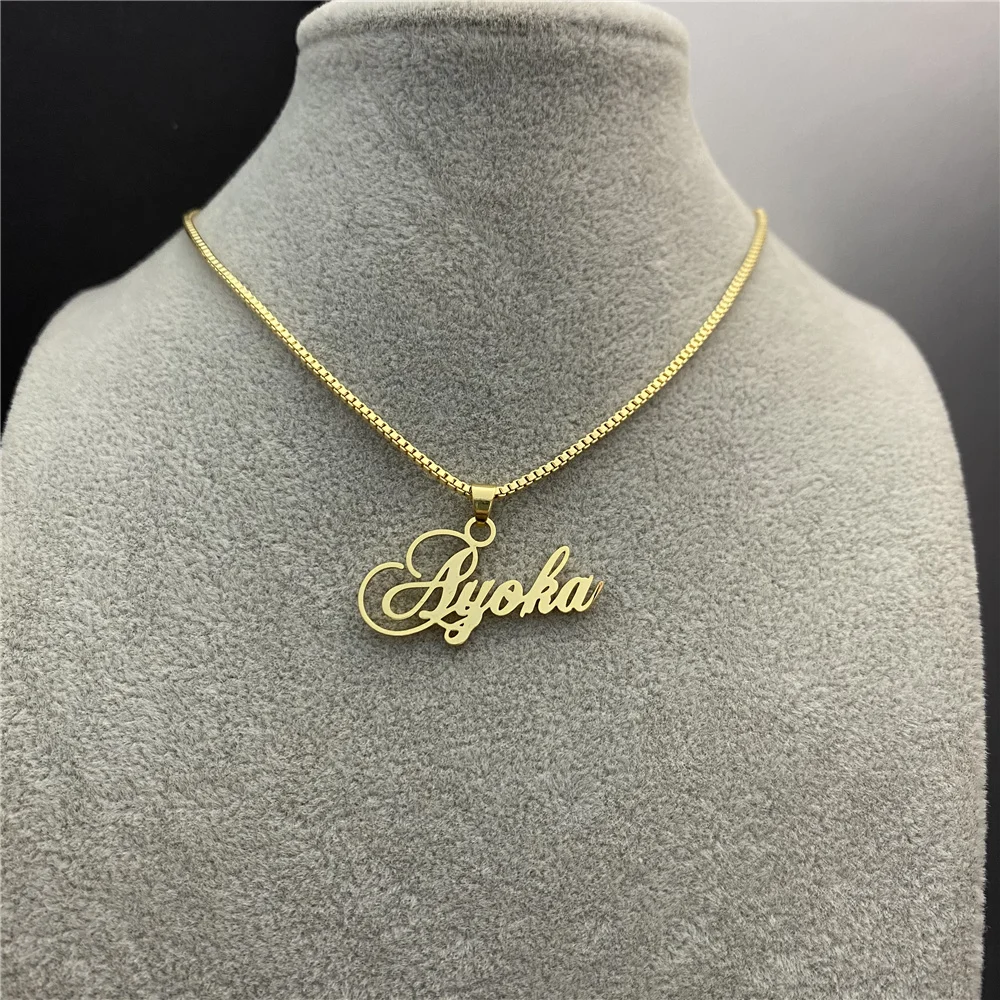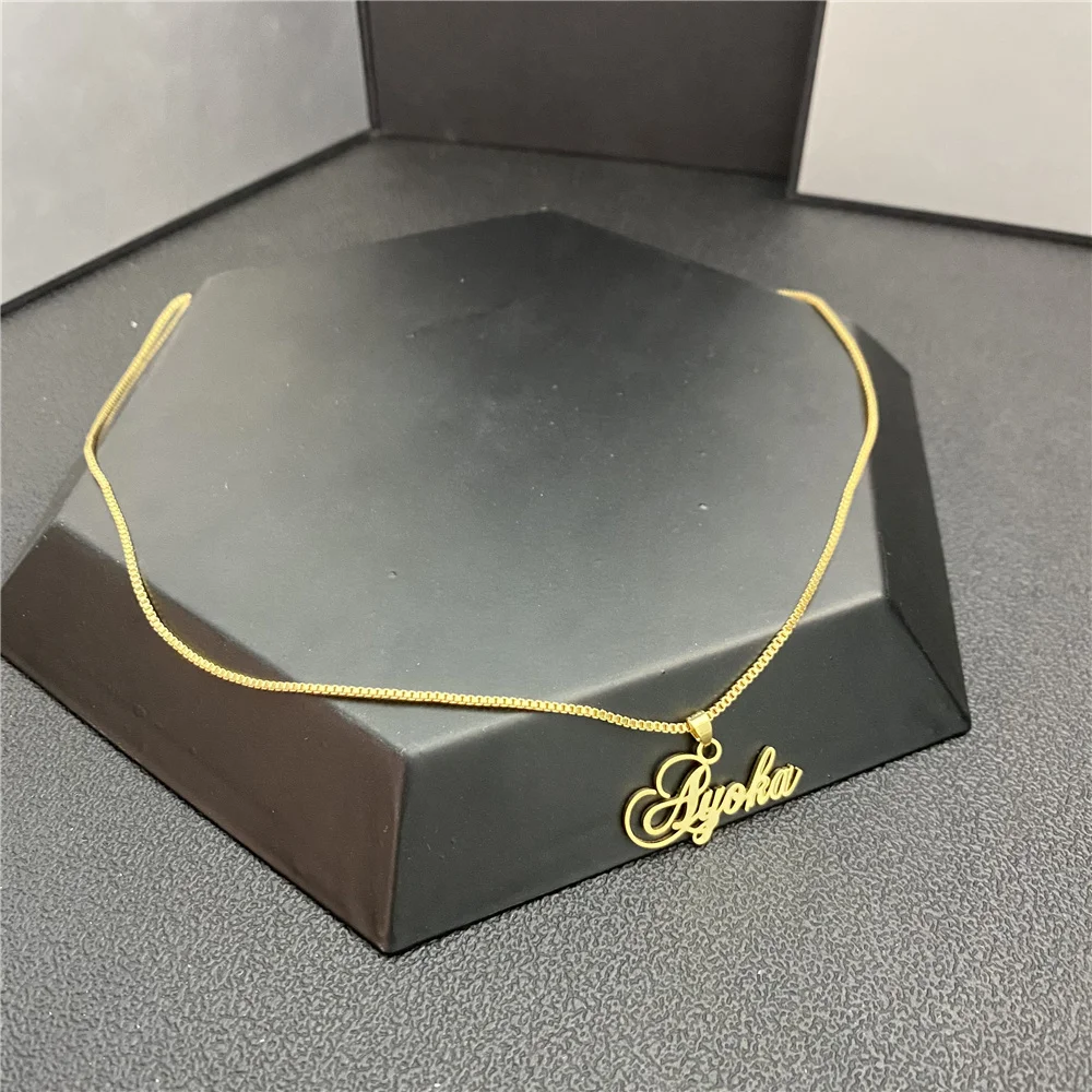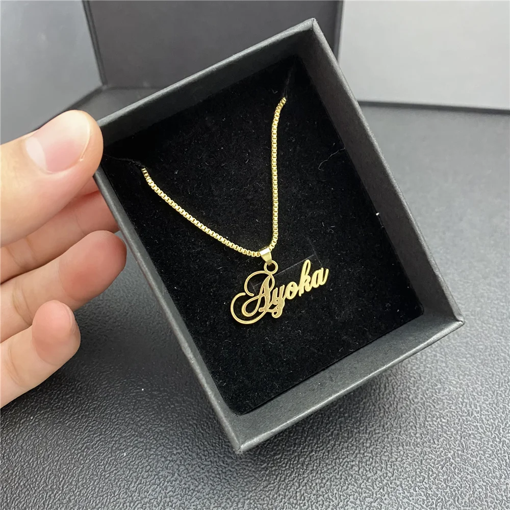 Ожерелье с именем VishowCo на заказ, цепочка из нержавеющей стали с золотой коробкой, ожерелье с кулоном на заказ для женщин, ювелирные изделия 2021, подарки