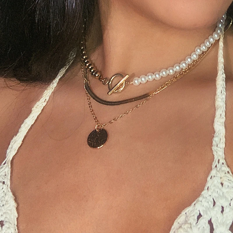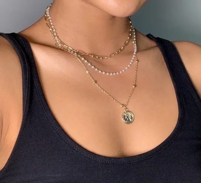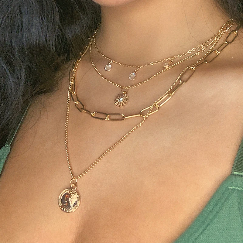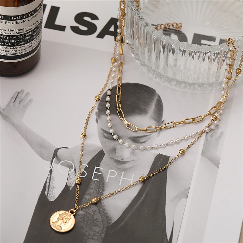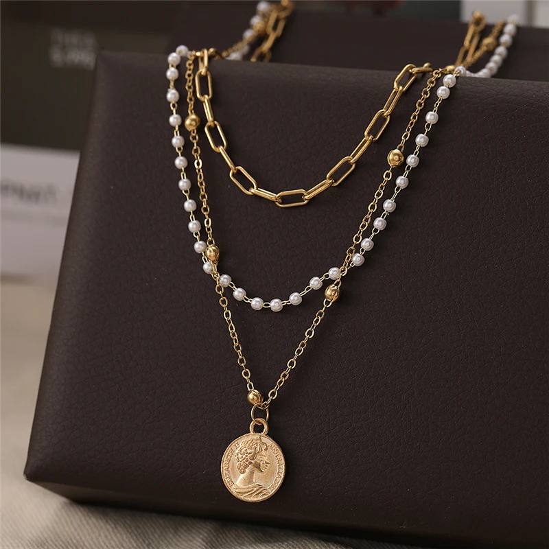 Винтажное многослойное Жемчужное ожерелье 17KM для женщин модная Золотая монета с портретом кулон толстая цепочка ожерелья ювелирные изделия