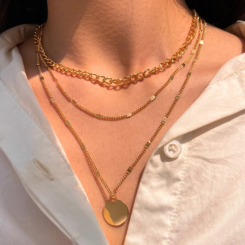 Корейская Золотая многослойная Геометрическая цепочка 17KM, ожерель...
