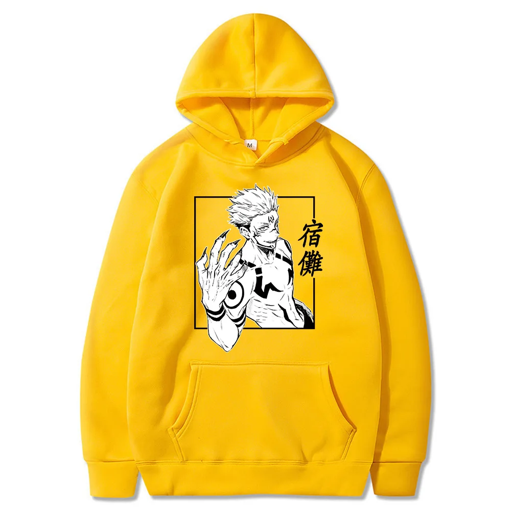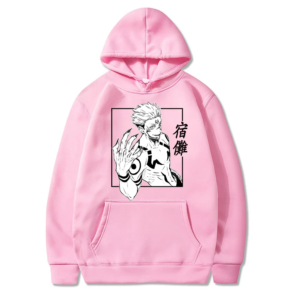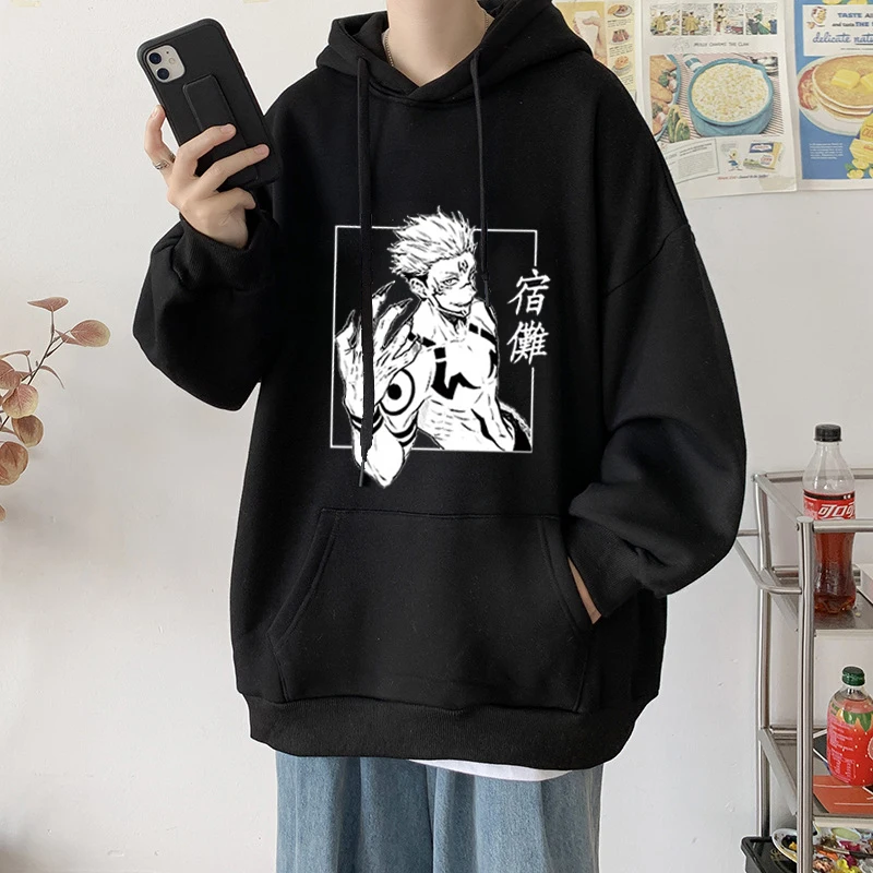 Японское аниме забавные толстовки Sukuna с графическим принтом в японском стиле, худи юютсу кайсена, уличная одежда оверсайз для женщинмужчин
