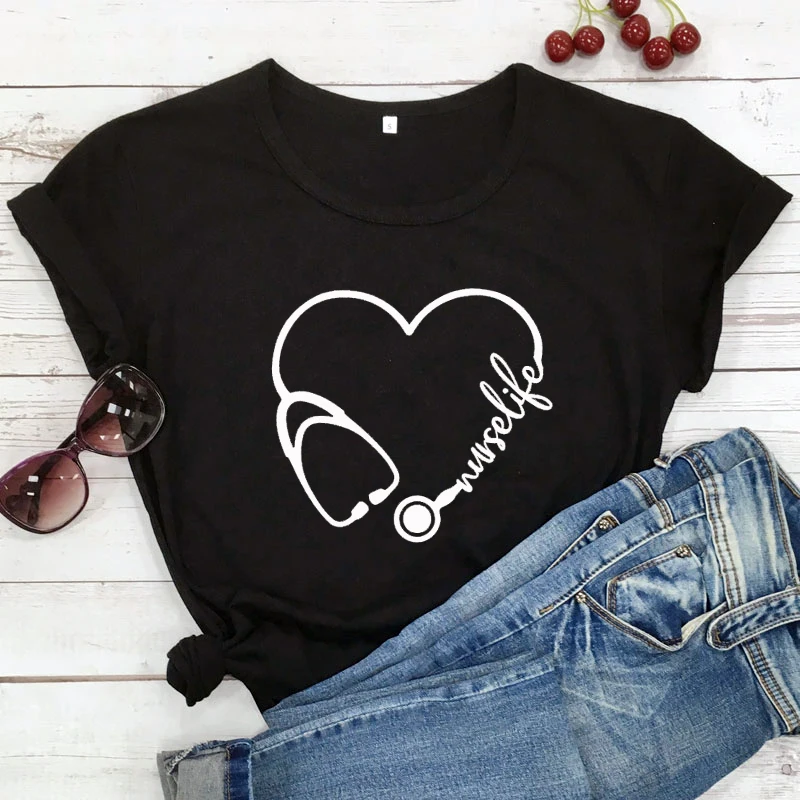 Хлопковая футболка для медсестер Life, забавная женская футболка в стиле 90-х с стетоскопом, подарок для кормления, женская футболка с графическим рисунком, Женский Топ