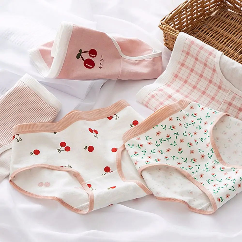 Японское цветочное нижнее белье с вишней для девочек, мягкое дышаще...