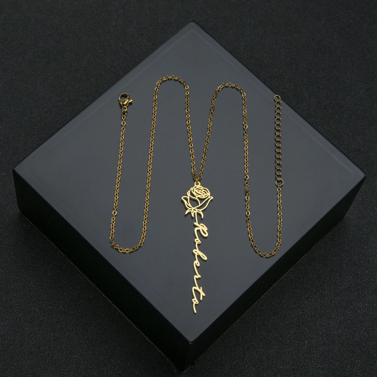 Название: Acheerup персонализированное ожерелье с цветком для месяца рождения для женщин, заказное имя, цепочка из нержавеющей стали с розой, кулон, ювелирное изделие, подарок на день рождения