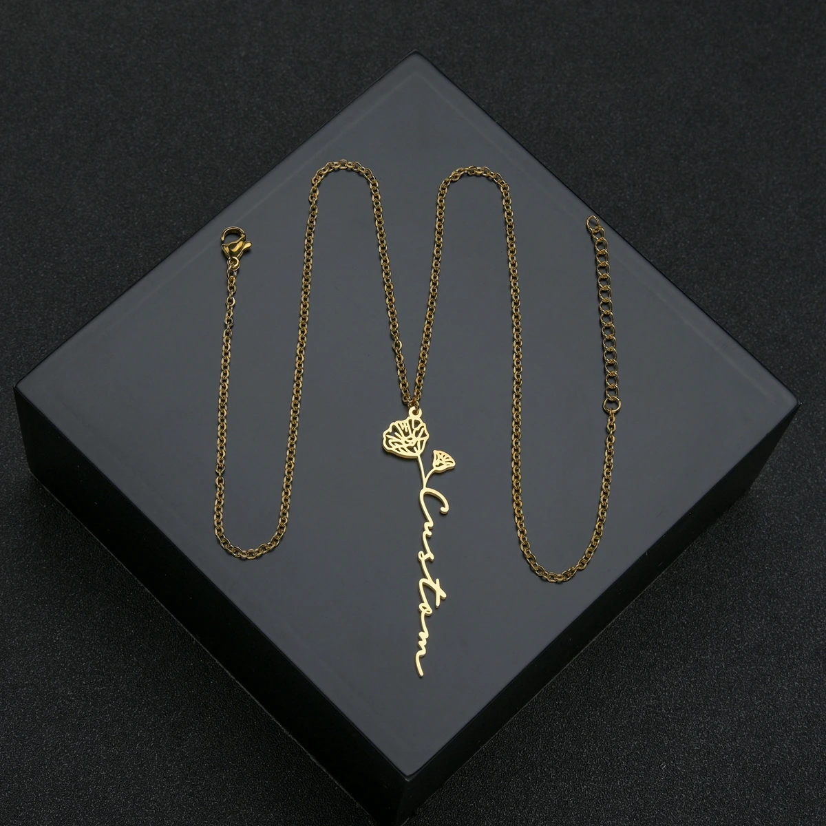 Ожерелье с именем цветка на заказ, подвеска из нержавеющей стали с ...