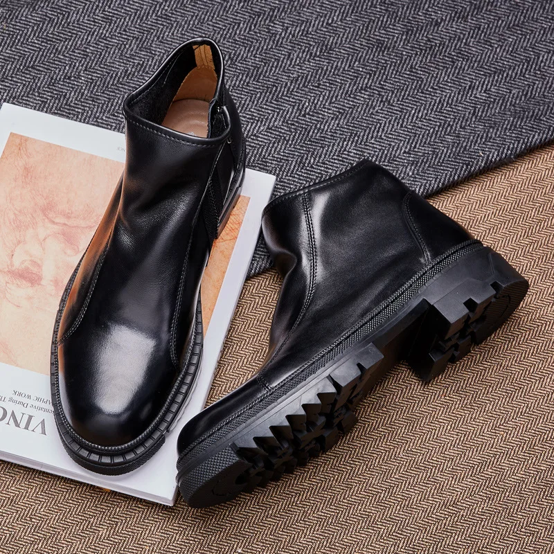 Модные ботинки челси из натуральной кожи 2021ss, плюшевые теплые ботинки, мужская обувь, обувь Traf для женщин и мужчин, повседневная обувь, ботинки мартинсы